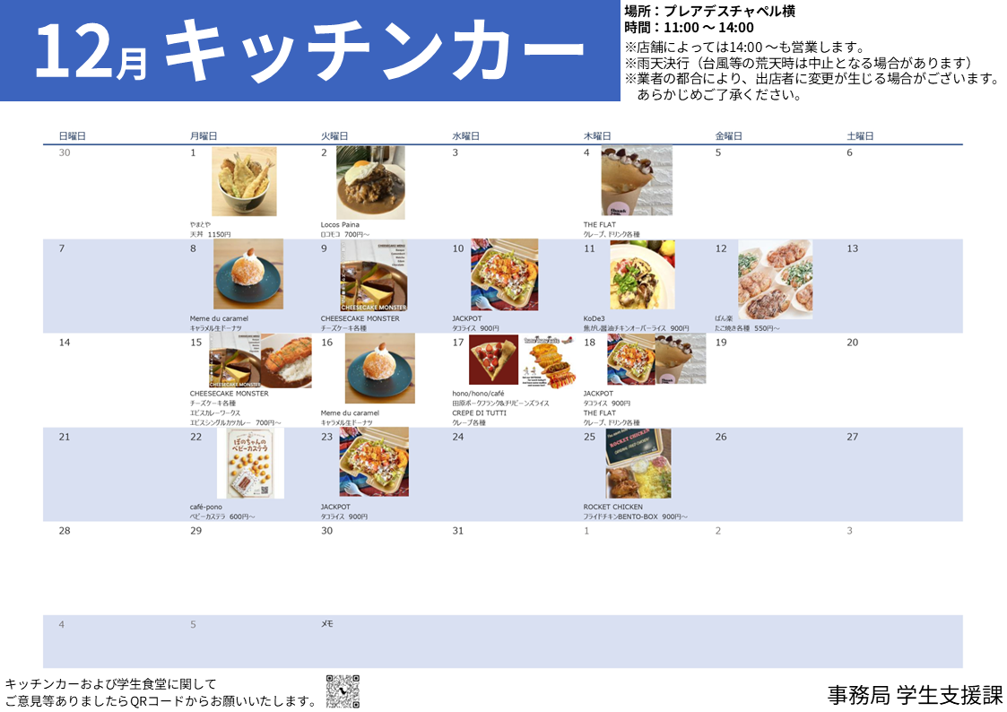 出店時間:11時~14時(店舗によっては14時以降も営業します)