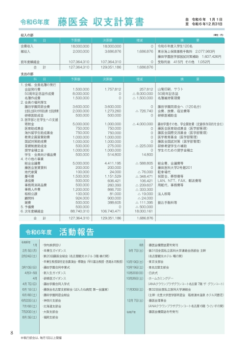 令和6年度 藤医会 収支計算書・活動報告
