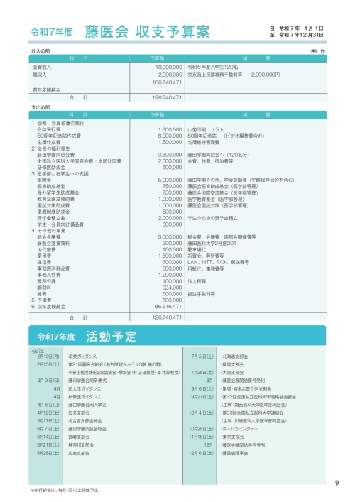 令和7年度 藤医会 収支予算案