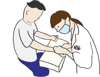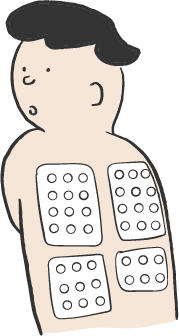 アレルギー反応によるかぶれの原因を調べる検査です。 かぶれの原因と考えられる製品やアレルゲンを背部または上腕の皮膚に貼布し、皮膚の反応を確認します。