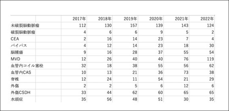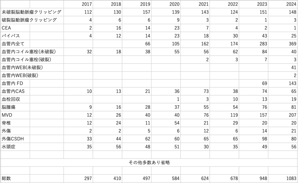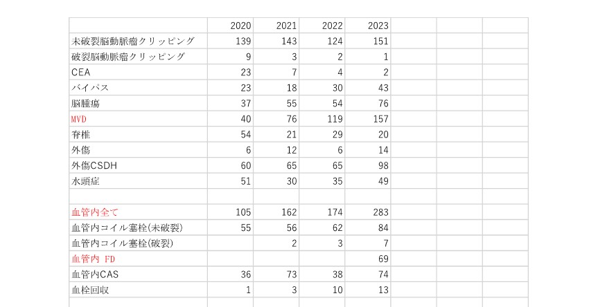 AVM摘出術(1),海面状血管腫 摘出術(1),ETV(1),減圧開頭(1)