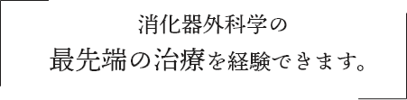 そのため、当教室では、肝胆膵領域の高難度手術腹腔鏡手術、消化管領域の低侵襲手術(腹腔鏡手術)を経験することができ、また一般外科的疾患(胆石症、鼠径ヘルニア、痔など)や急性疾患(急性虫垂炎、消化管穿孔、絞扼性イレウスなど)を含む消化器外科医としての基本手術手技を習得することができます。 加えて、腹部大血管や末梢静脈の各疾患(腹部大動脈瘤、下肢静脈瘤など)についても血管専門医の指導のもと、その技術を習得することが可能です。