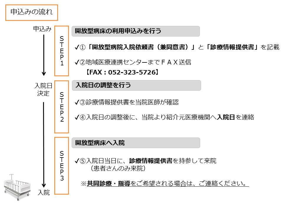 ※開放型病床は、「名古屋市病診連携システムの登録医師」のみ利用可能です。あらかじめご了承いただきますようお願い申し上げます。