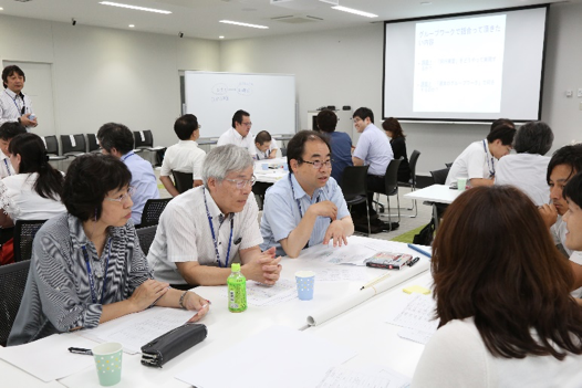 | Prof. Yumiko Miyoshi, Deputy Director of the Center for The Assembly Education, in charge of Assembly IV, delivered a lecture entitled “Summary and report of the trials of Assembly IV conducted thus far,” with participants deepening their understanding of the aims and issues arising from the Assembly IV courses conducted as trials from 2016 to 2018. Also, from the findings of the trials, “shadowing” (students accompanying actual interprofessional medical teams on-site) was proposed as an idea for content to be included in the new Assembly IV program, and directions of the group work activities were also determined. |