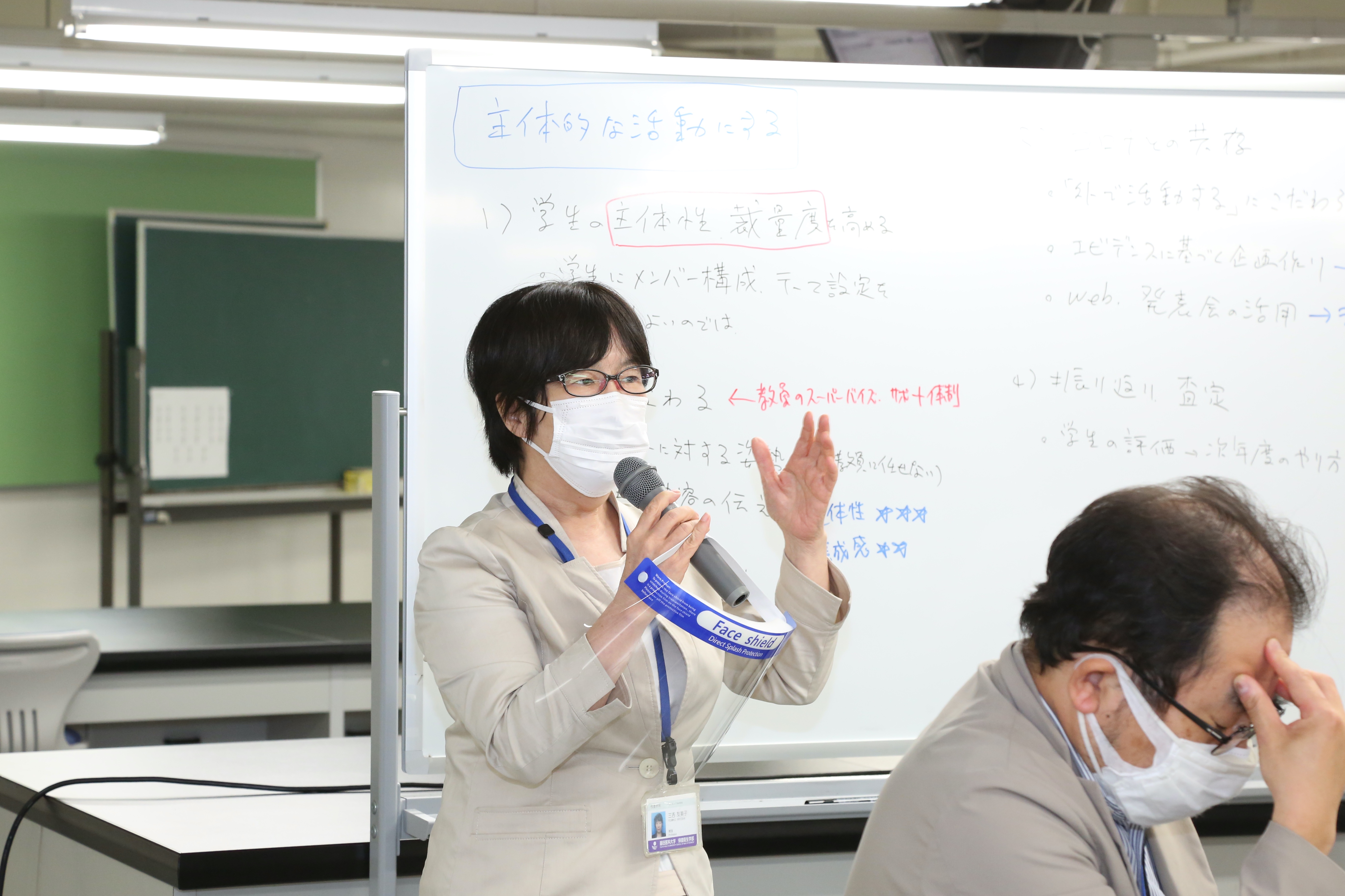 | WSの総評として、アセンブリ教育センター長の大槻眞嗣先生が各班から提案された内容を整理しました。提案された内容をヒントにして、学生と教職員にとって魅力的なアセンブリⅡとなるようにしていきたいとの意気込みをもってワークショップを締めました。 |