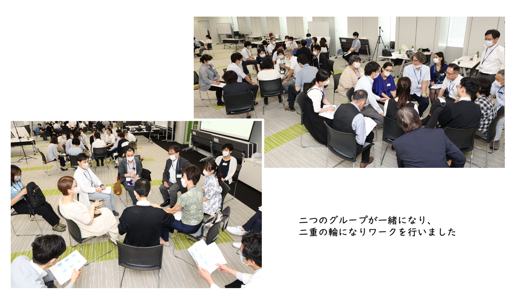 | グループワークIでは、「professional identityとinterprofessional identityの両者が必要であることを意識して、アセンブリ教育を行うにはどうすれば良いか?」をテーマに、「professional identityとinterprofessional identityが意識されているか」、 「2つのidentityを意識してアセンブリ教育を行うにはどうすれば良いか」という問いに対して各グループで議論がなされました。 |