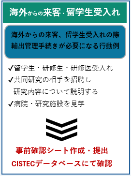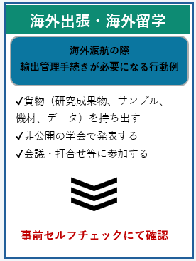 国際的な産学連携、留学生の受入れ、研究成果(科研費の成果を含む)の国外提供、海外の大学との共同研究などはすべて輸出管理の対象となり、内容によっては事前に経済産業大臣の許可を得なければならない場合があります。