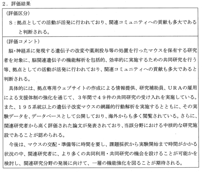 文部科学省「特色ある共同利用・共同研究拠点」中間評価において、最高評価Sを獲得しました。 平成30年9月14日、文部科学省から「特色ある共同利用・共同研究拠点」の中間評価が発表され、藤田保健衛生大学は最高のS評価を受けました。 特色ある共同利用・共同研究拠点の中間評価結果について(通知)より抜粋