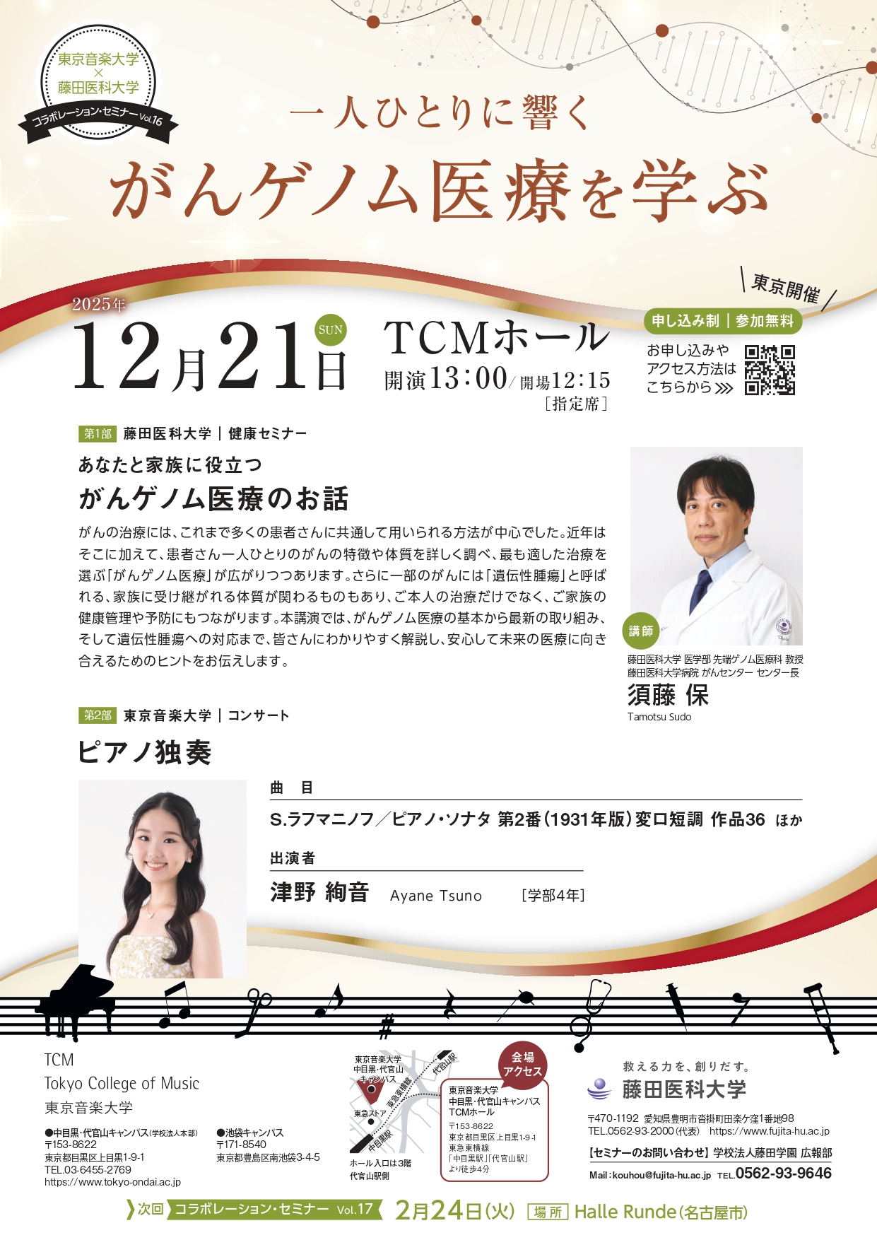 TOP >  公開講座・出張講義・病院見学ツアー >  市民公開講座・セミナー >  東京音楽大学×藤田医科大学コラボレーション・セミナー