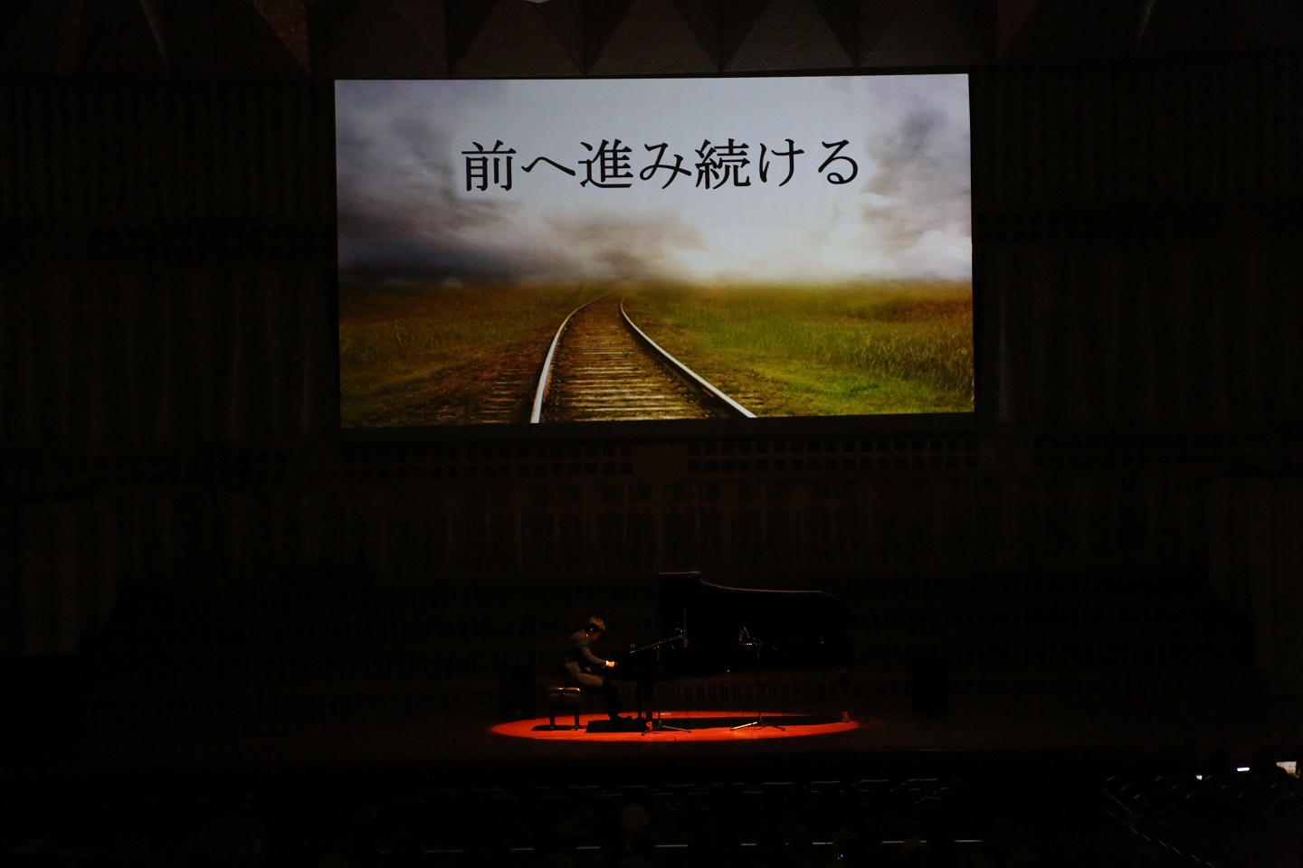 今回のコンサートでは、愛知教育大学の武本京子教授と本学の伊藤康宏教授が「音楽が体に及ぼす影響」を共同研究の検証結果として発表し、昨年9月に行った治験のショートバージョンを紹介、また愛知教育大学のダンスグループのパフォーマンスと共に「イメージ奏法」による音楽と映像の世界を繰り広げました。