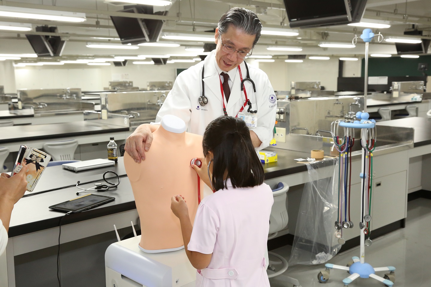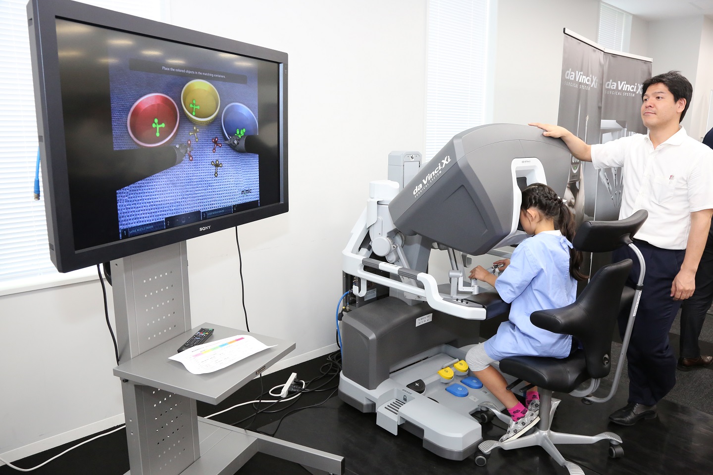 なかでも今回は、「ダヴィンチの手術シミュレータ」によるロボット手術を子どもたちが体験し、多くのミディアに取り上げられました。シミュレーターはゲーム感覚で操作を行えるため、子どもたちは「楽しかった!」「2回目は点数が増えて嬉しかった」と笑顔で取材に答えていました。