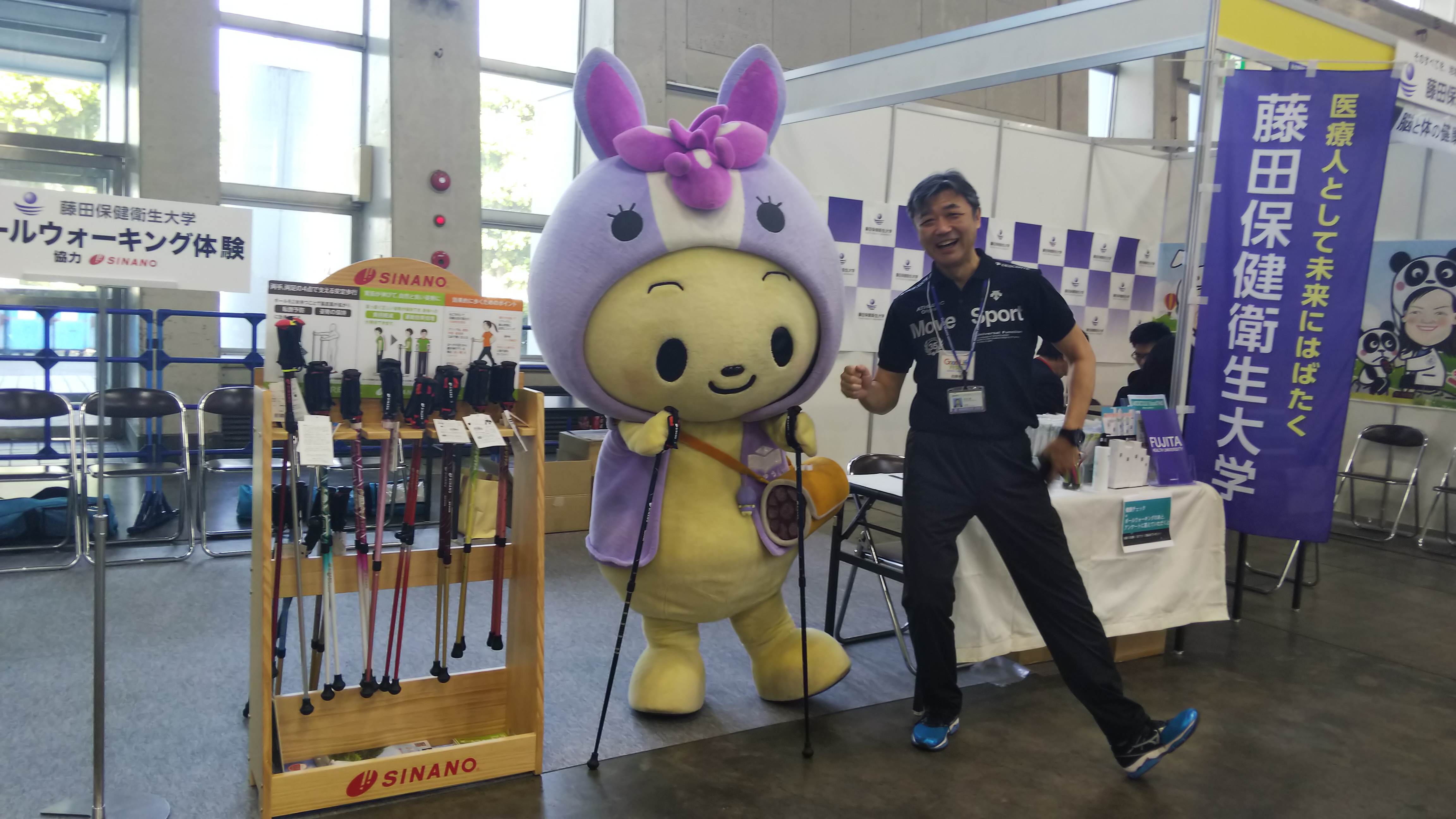 本学は「脳と体の健康チェック」と「ポールウォーキング体験」のブースを出展し、2日間で計430名の健康を意識した方々がブースに集まりました。
