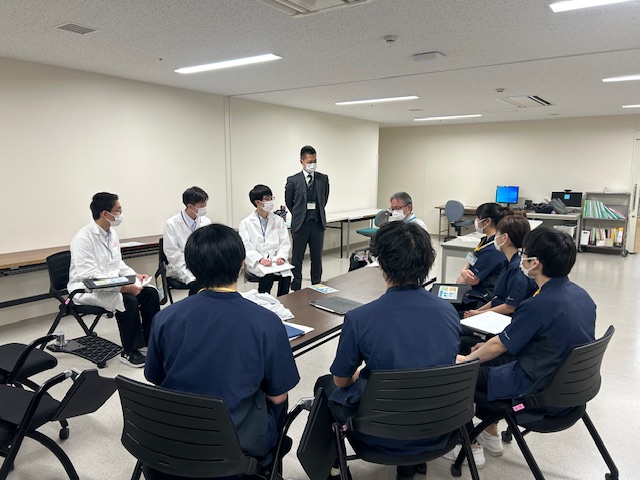 2023年12月22日名古屋高校インターンシップ Tweet 名古屋高等学校のインターンシップが、12月22日に藤田医科大学病院で実施され、医師を目指す2年生7名と1年生3名の生徒が参加しました。MIL名古屋の手術支援ロボットhinotoriの操作体験をした後、血液内科病棟とERの 2グループに分かれ見学しました。本学医学部学生との対話では、医師を目指した動機や医学部に入ってからの様子などを聞きました。