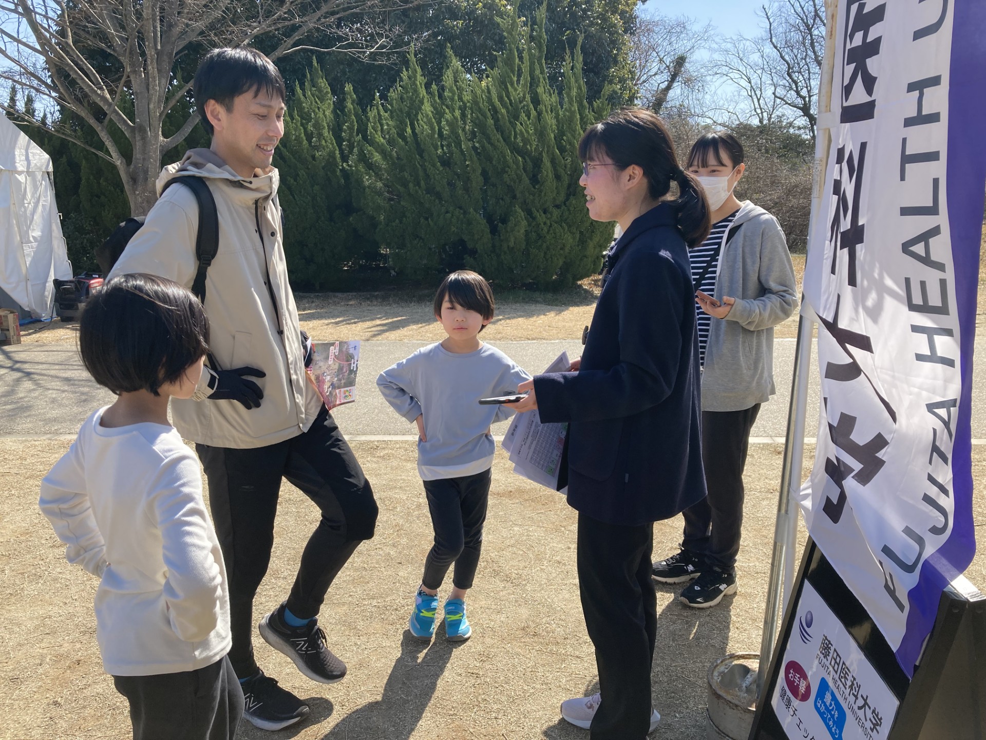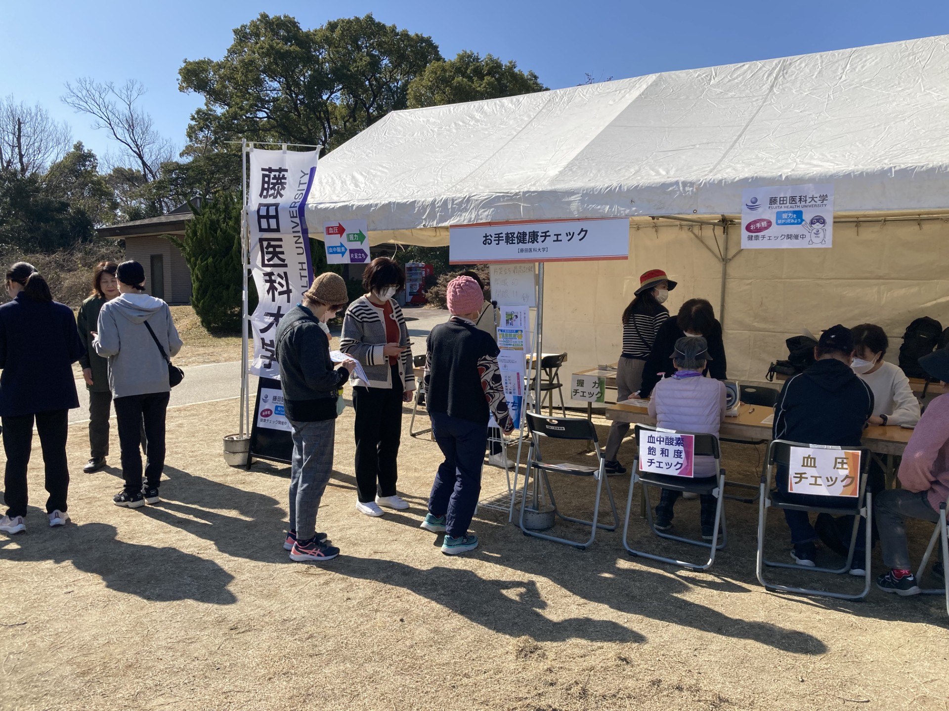 3月1日(土)、愛知県が主催する大高緑地花梅まつり(2025年2月15日~3月2日の土・日・祝日に開催)に本学のブースを出展し、教員3名と学生ボランティア2名を派遣しました。ブースでは血圧・握力・SpO2測定のほか、開眼・閉眼で片足のまま何秒立てるか測定する片足立ちテストや、ランダムに書かれた数字を順番に指し示す注意力テストなどを行いました。気持ちの良い晴天で、多数の来場者があり、本学のブースにも約200名の方が訪れにぎわいました。