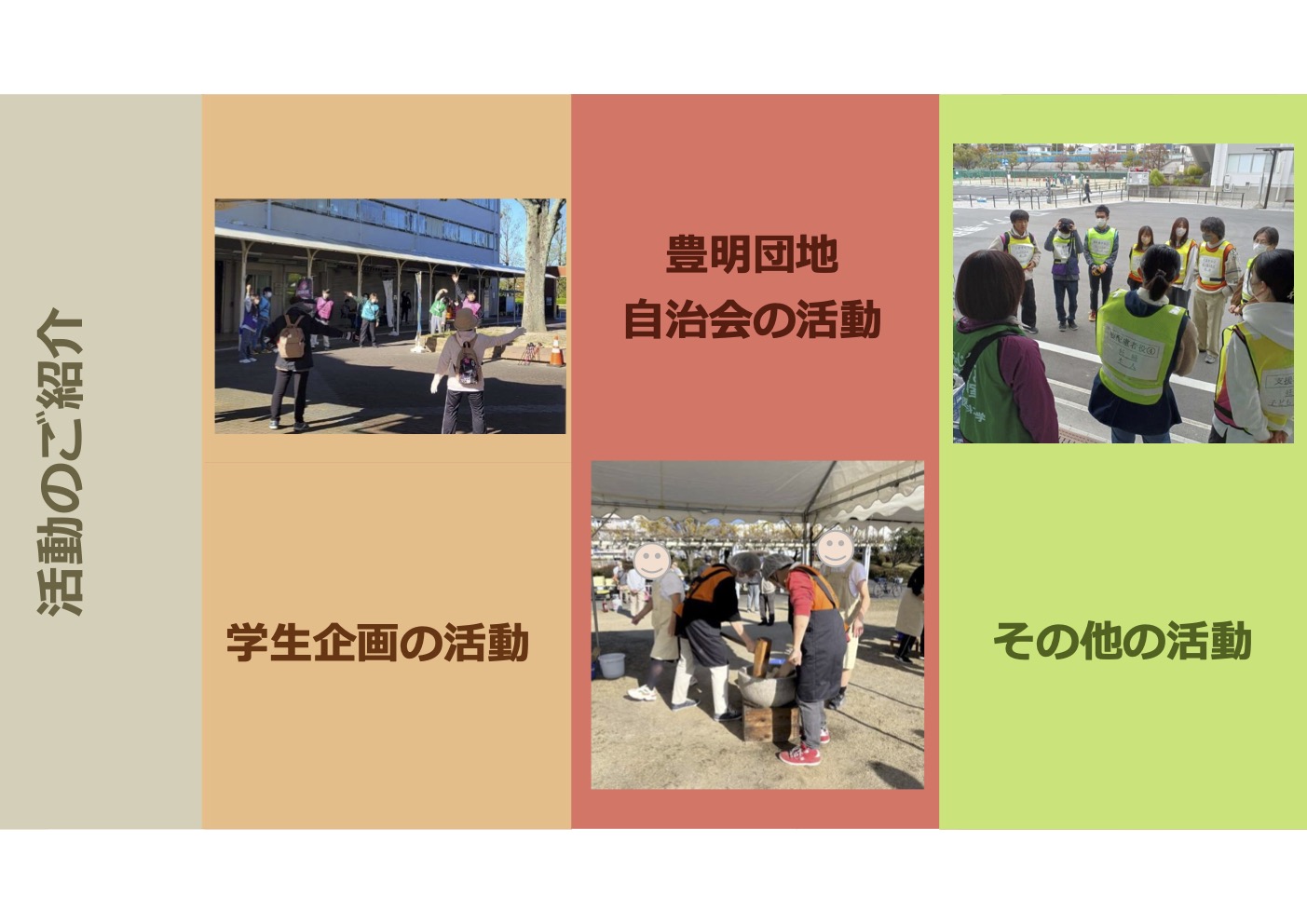 今年度、『豊明団地学生居住プロジェクト』には、大学学部生29名が参加しています。学生たちは学部や学科の垣根なく、お互いに協力しあいながら地域貢献活動に参加しています。