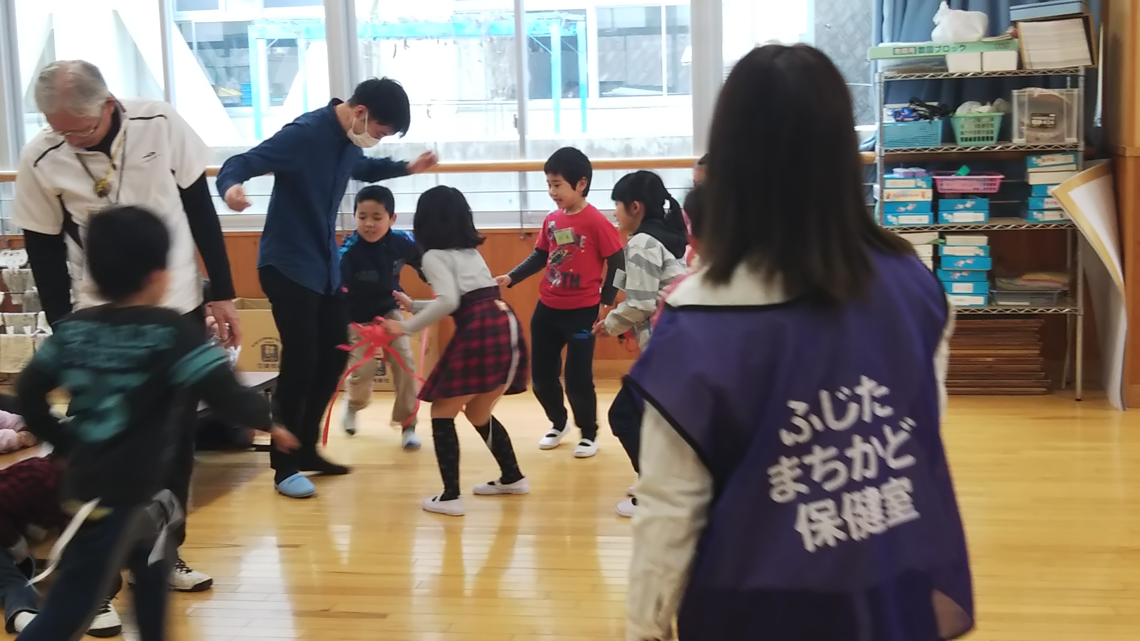 団地自治会「子ども向け行事」として、まちかど保健室との共同クリスマス会を開催しました。この日は、豊明中学校、豊明高校の皆さんも参加してくれました!