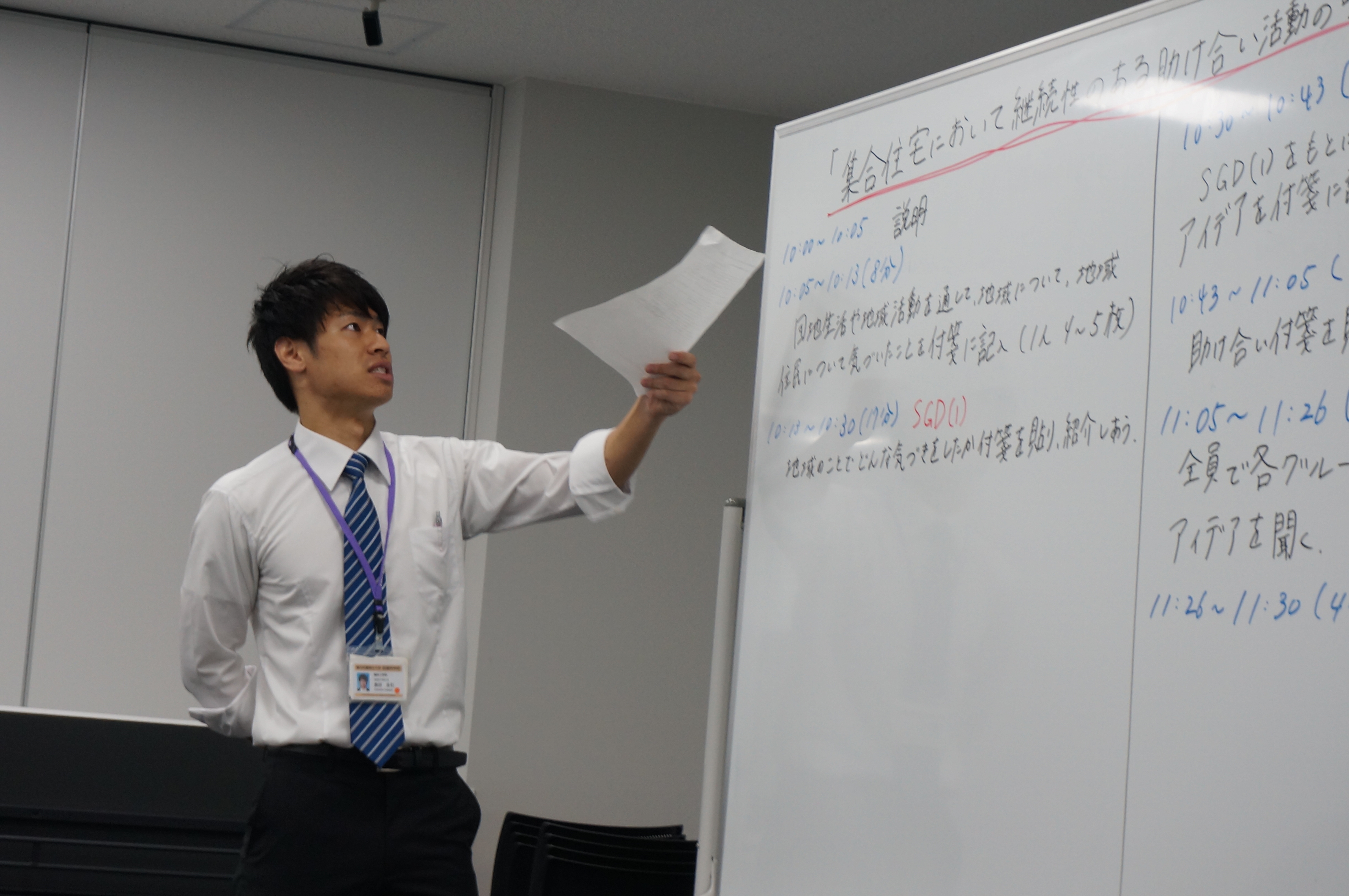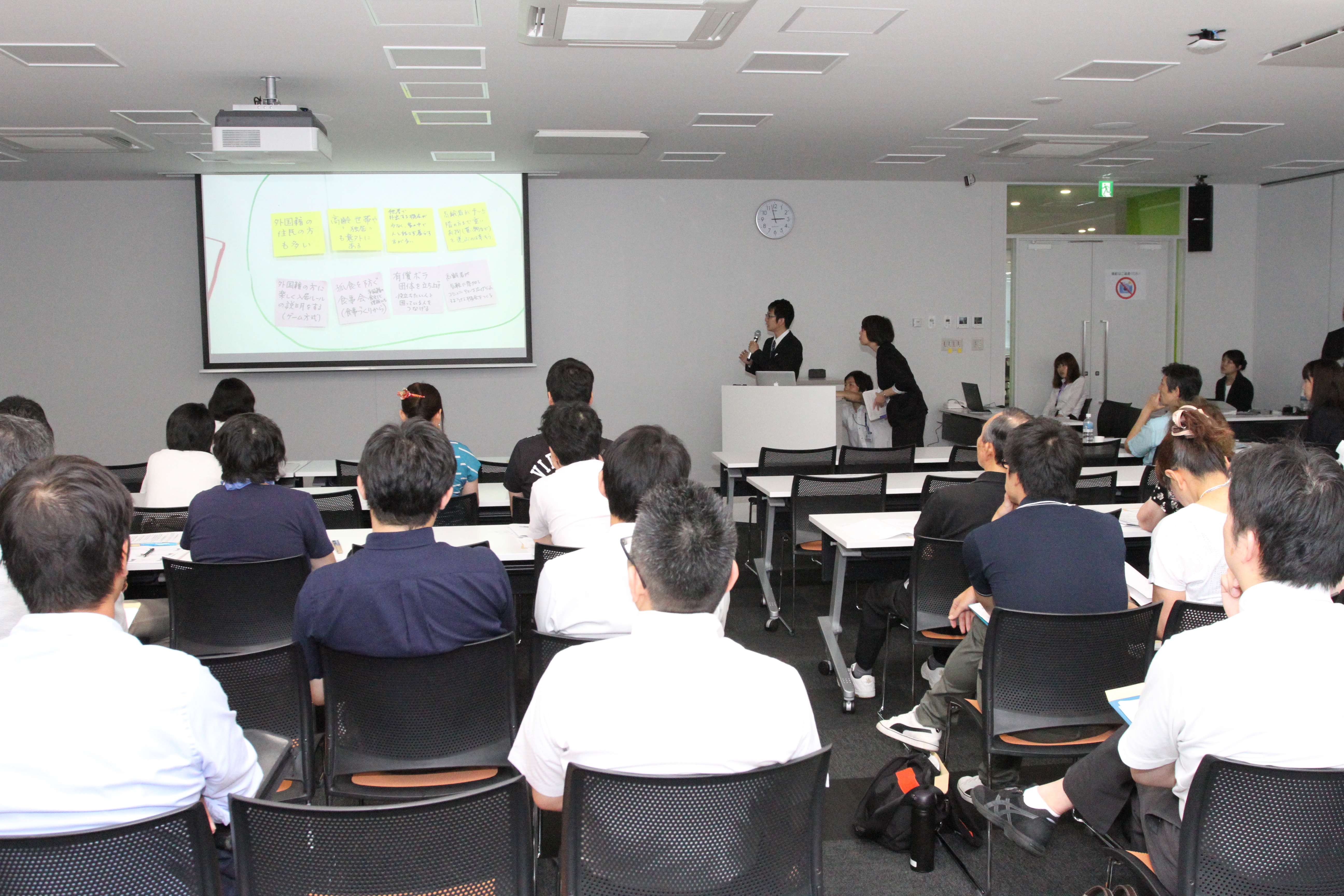 第2回地域包括ケア研究フォーラムにてグループワークを行いました。「集合住宅における継続性のある助け合い活動の可能性」をテーマとし、地域課題や解決策について活発な議論ができました。特に優秀であった2グループは本会場にて発表も行いました。