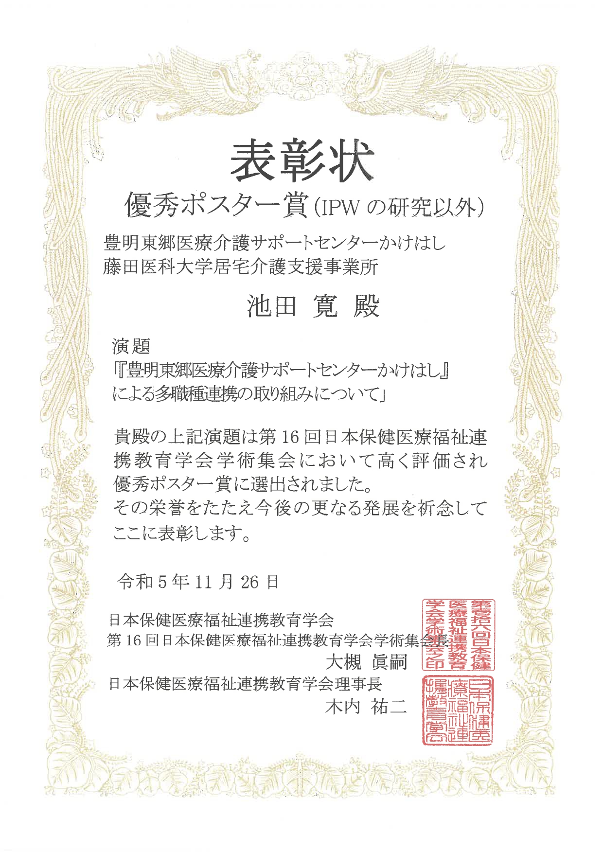日本保健医療福祉連携教育学会学術集会 表彰状