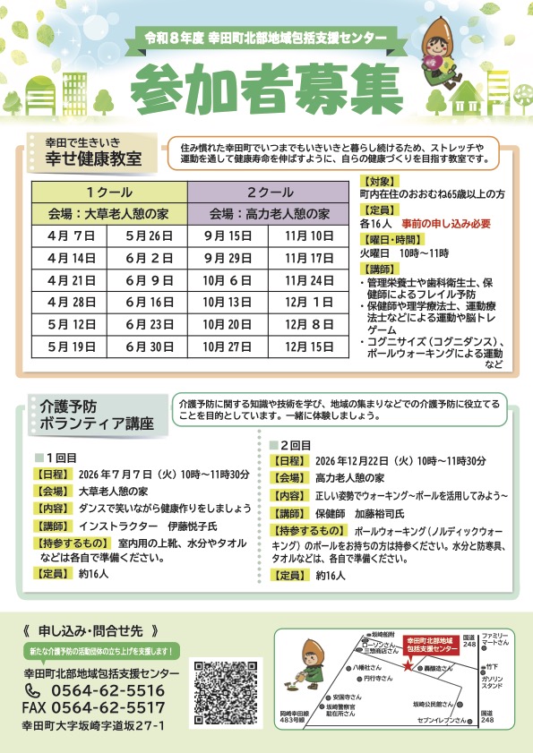 お申し込みは 幸田町北部包括支援センター まで