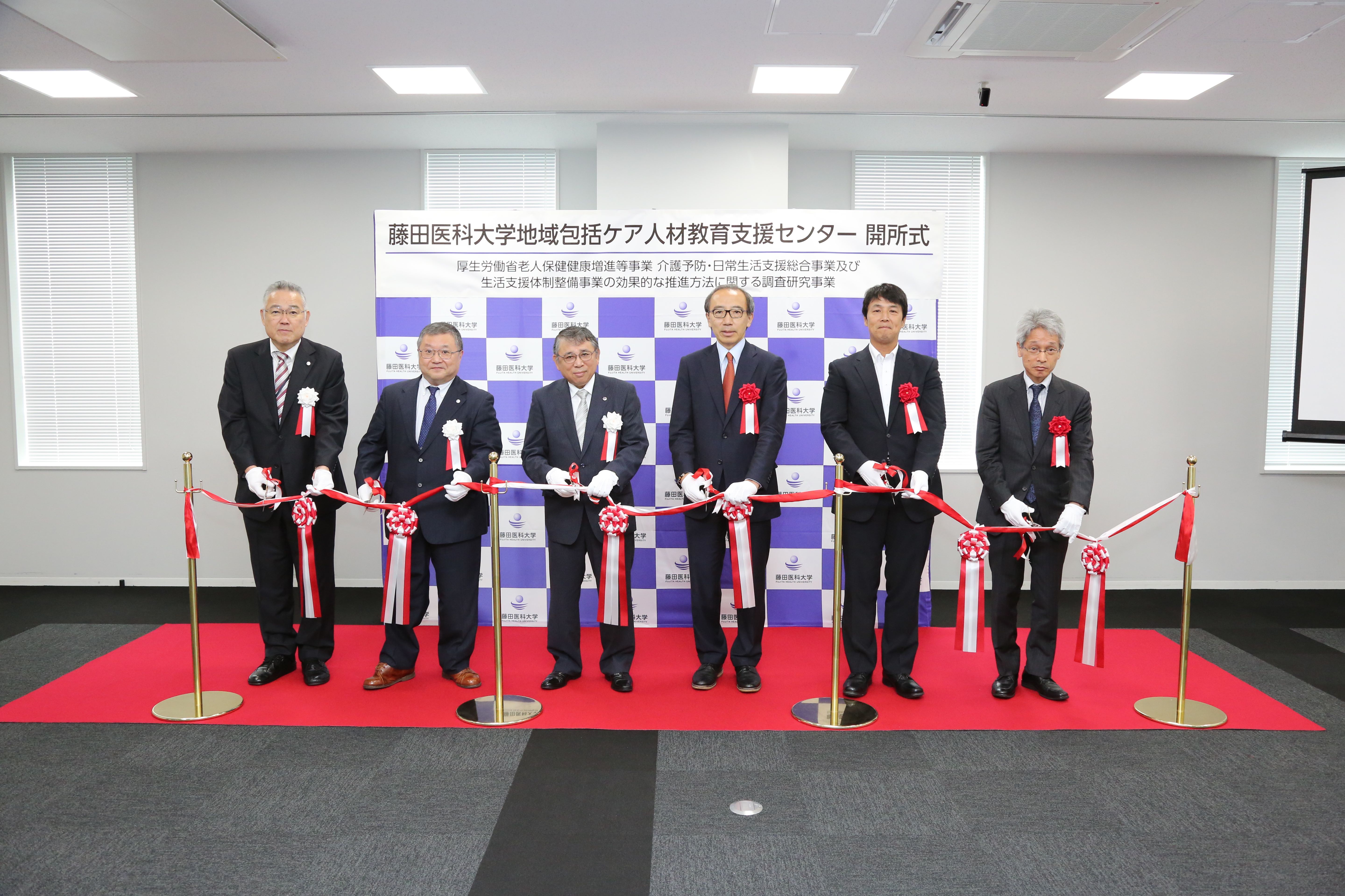 開所式 Tweet 藤田医科大学は,自治体によってばらつきのある地域包括ケア事業の底上げを図るため,運営の要となる市町村職員や医療・介護職を継続的に育成する専門施設として,「地域包括ケア人材教育支援センター」を開設しました。2019年7月8日に開所式が行われ,厚生労働省東海北陸厚生局の堀江局長や才藤栄一学長らによるあいさつの後,テープカットで開所を祝いました。 課題解決型実践研修により人材育成を支援するとともに,構築・運営のノウハウやネットワークを集積した知の拠点をめざします。