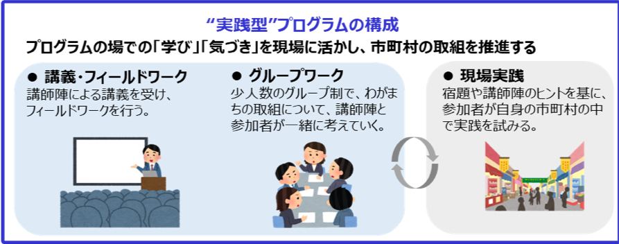 ①実際の事業推進と直結する“実践型”のプログラムです。