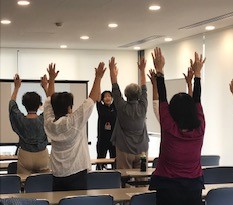コーラスでは、大きな声で歌えませんが、声以外に振り付け動作で歌を楽しむ感染予防への工夫をして楽しんでいます