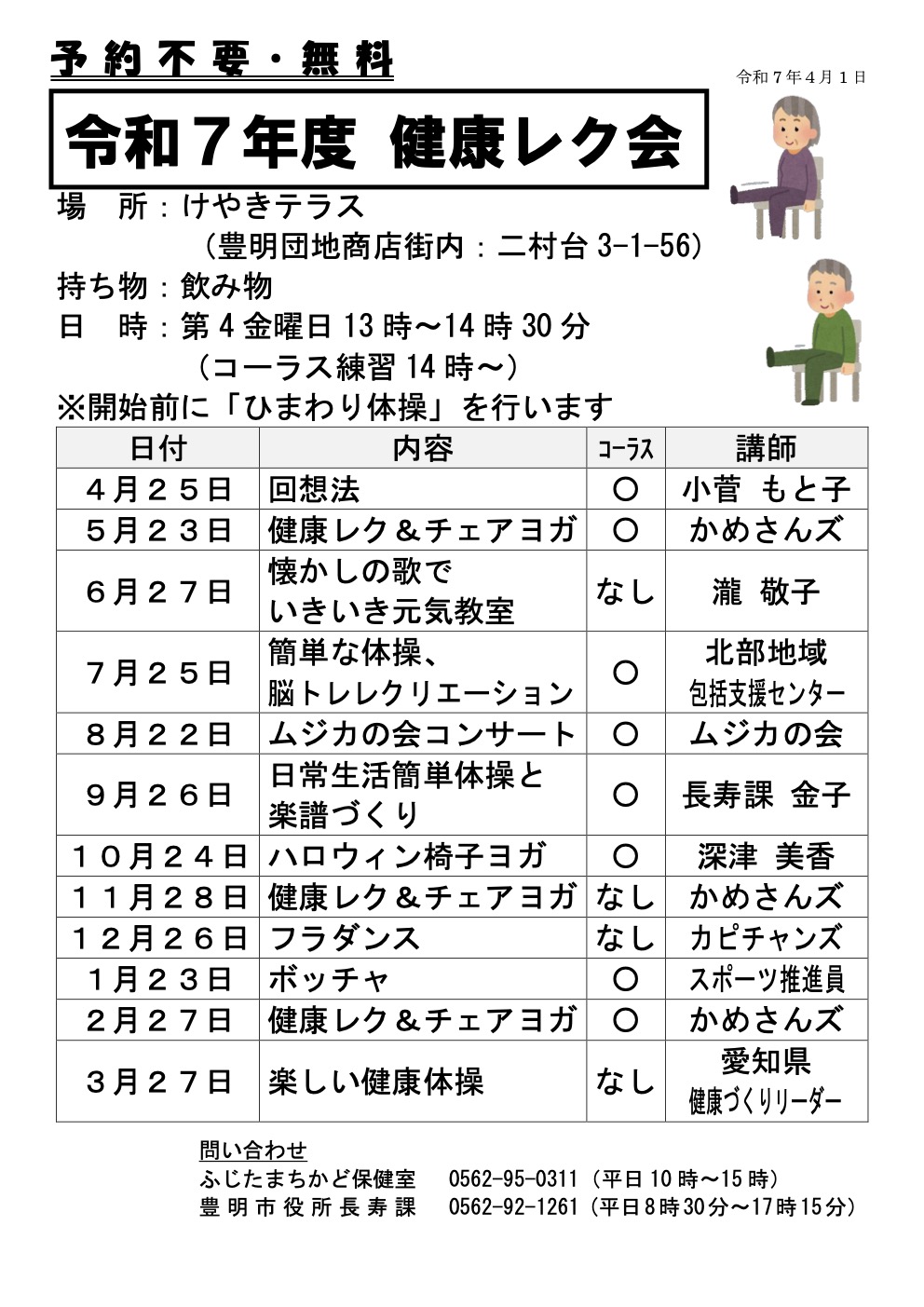 お問い合わせは、ふじたまちかど保健室もしくは豊明市役所長寿課までお電話ください。
