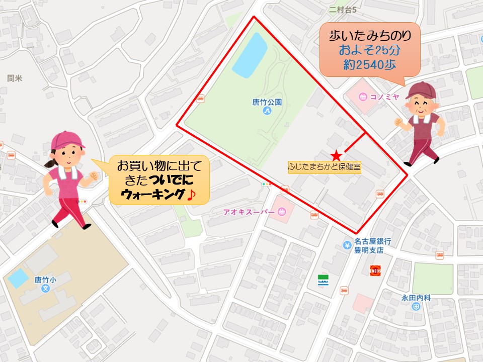 なかなか散歩が習慣づかない、目的もなく歩くのは苦手、一人で歩いてもつまらない…。ふじたまちかど保健室の相談で、そんな声を伺いました。