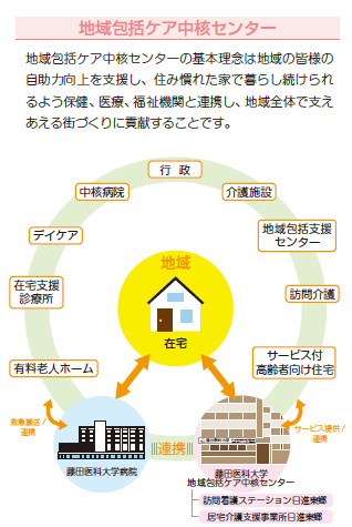 地域包括ケア中核センターの基本理念は地域の皆様の自助力向上を支援し、住み慣れた家で暮らし続けられるよう保健、医療、福祉機関と連携し、地域全体で支えあえる街づくりに貢献することです。