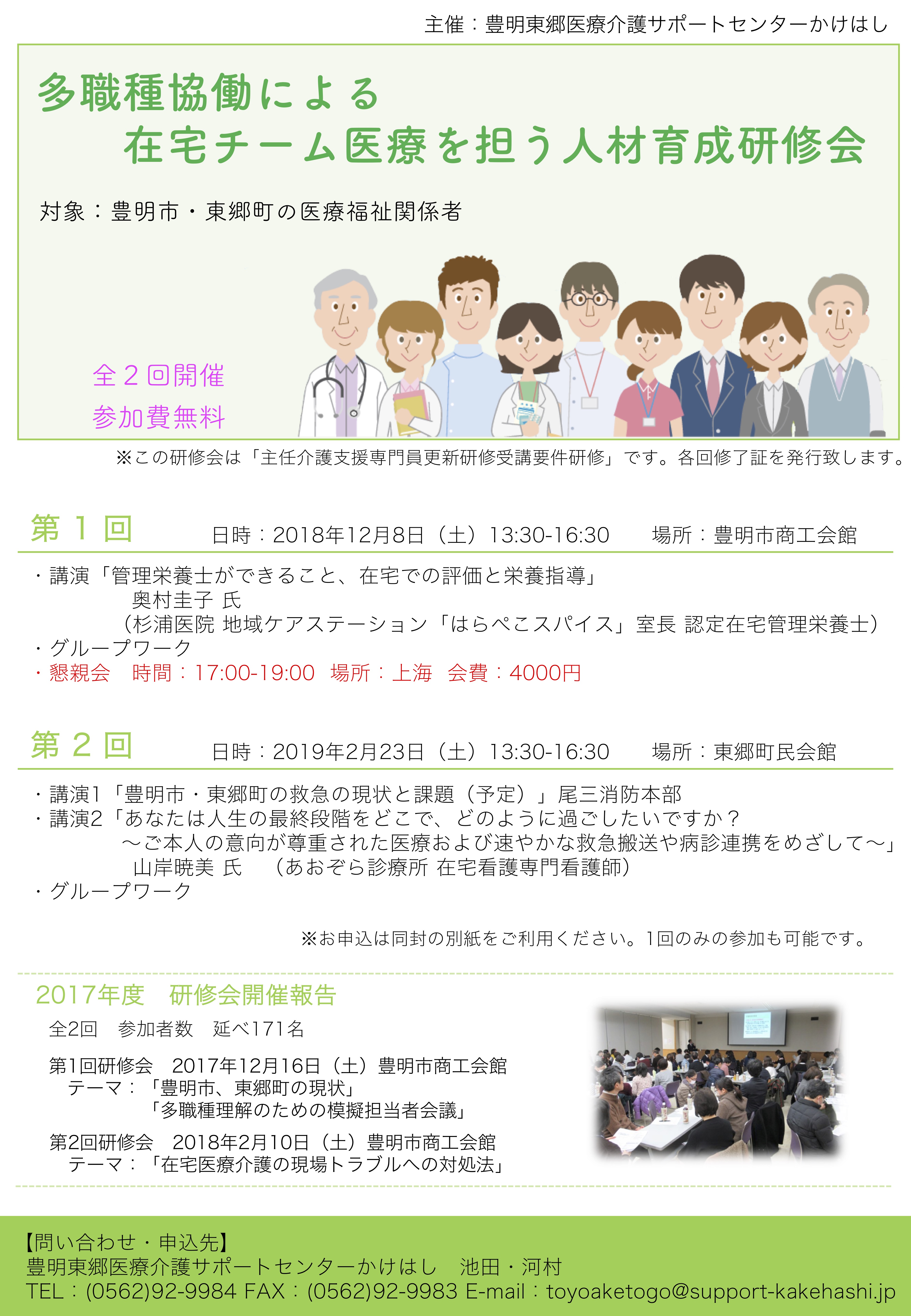 平成30年度 多職種協働による在宅チーム医療を担う人材育成研修会(全2回)を開催します。