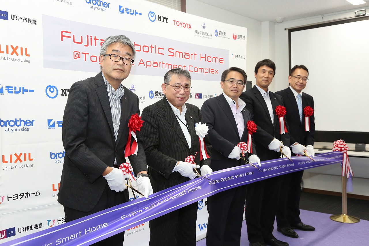 オープニングセレモニーが開催されました Tweet 豊明団地けやきテラス2Fにあるロボティック・スマート・ホームのオープニングセレモニーが開催されました。たくさんの新聞、テレビの取材も入り、改めて注目度の高さが伺えました。今後、住民の皆様への公開も予定しております。乞うご期待ください。 才藤センター長による事業説明 大村知事、小浮市長らによるテープカット トヨタ自動車が開発したハンドロボット 離れていても一緒に体操ができるコミュテレビ