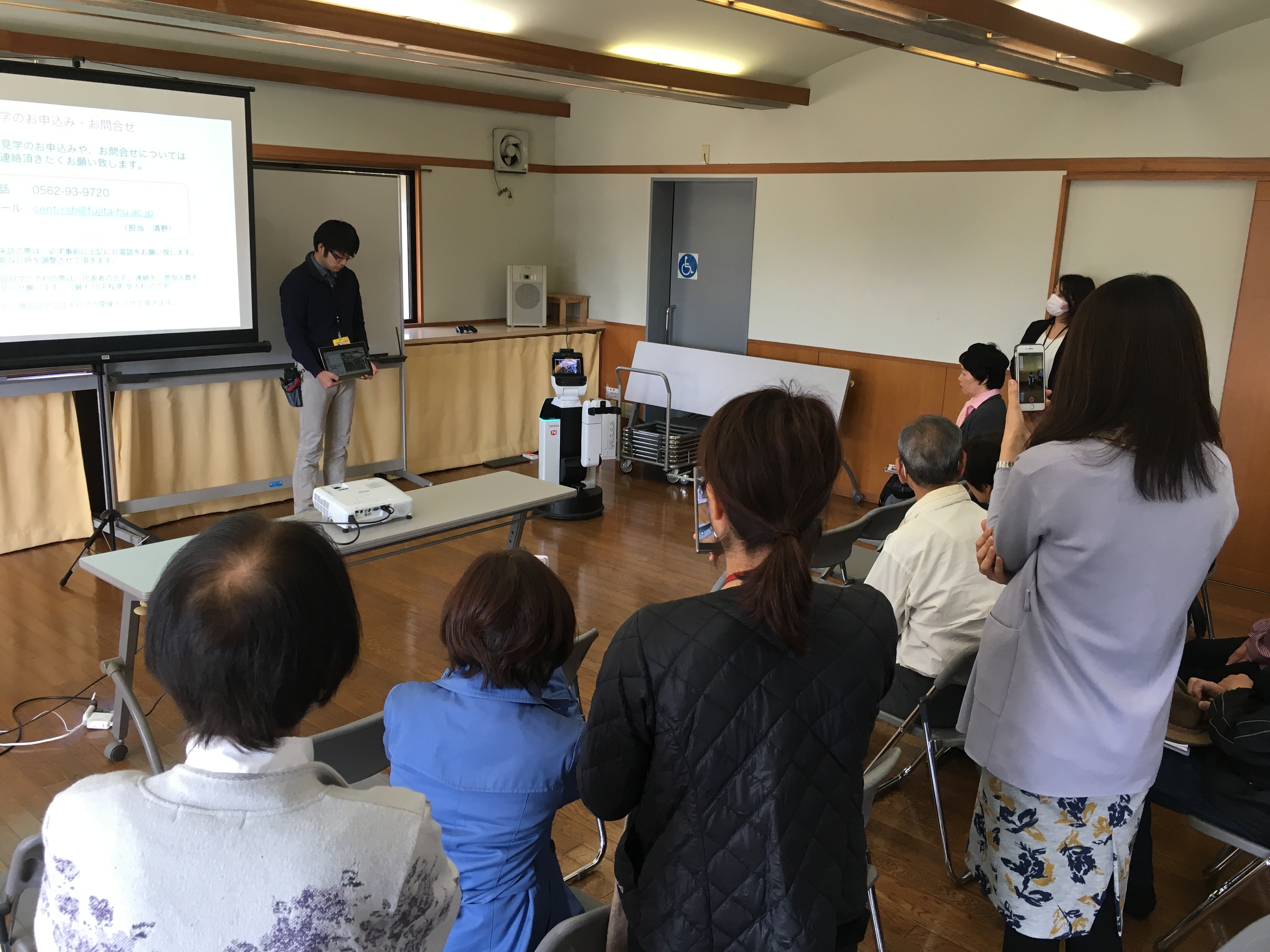 市民公開講座にて講演を行いました Tweet 豊明市地域包括ケアモデル事業である「けやきいきいきプロジェクト」の市民公開講座にて講演を行いました。豊明市内の住民の皆様に「未来の住まい」としてのロボティックスマートホームの有用性についてお話しさせていただきました。実際にロボットにも触れていただき、ロボットを身近に感じていただける機会となったかと思います。
