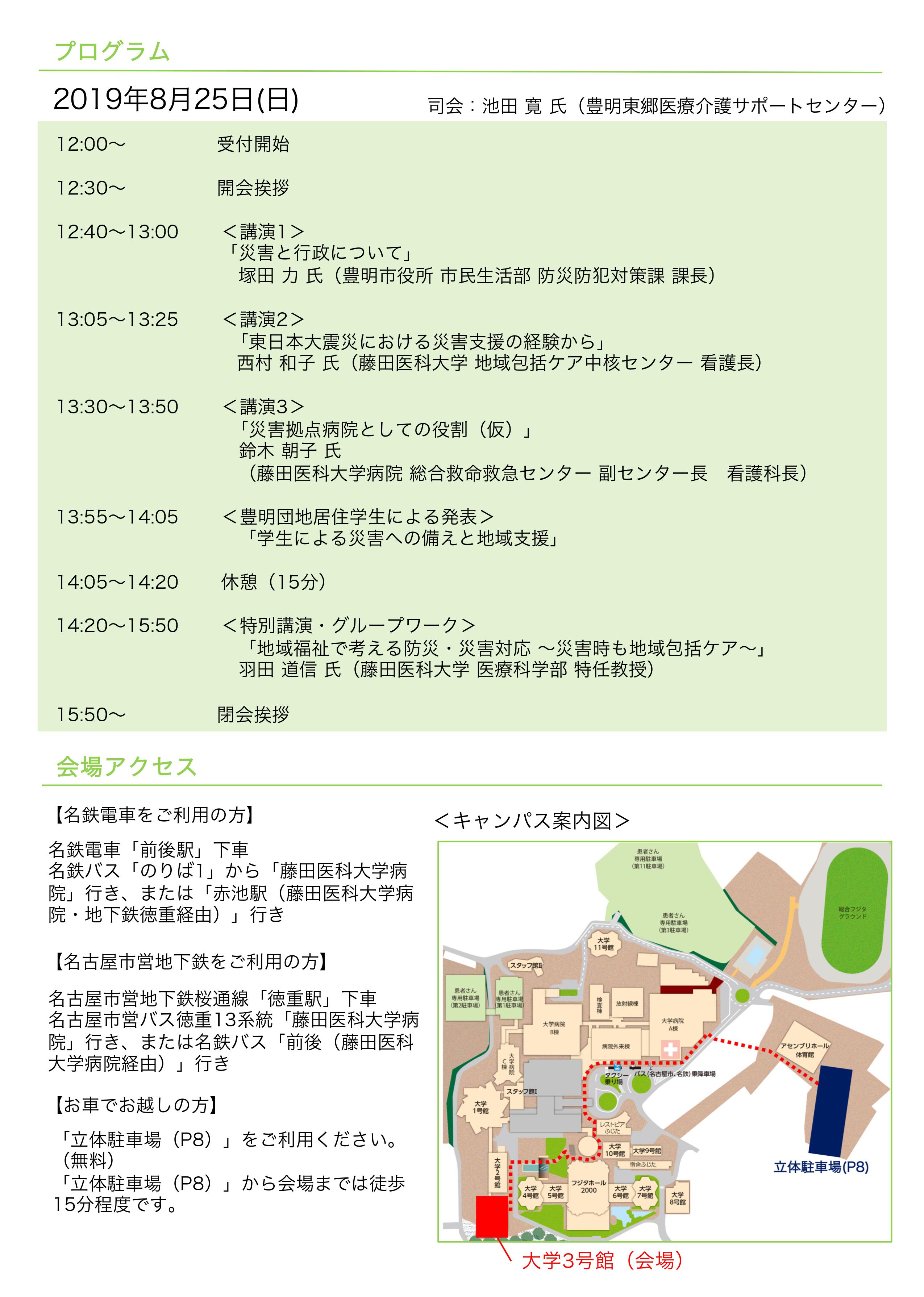 会場:藤田医科大学 大学3号館 4階(愛知県豊明市沓掛町田楽ケ窪1番地98)