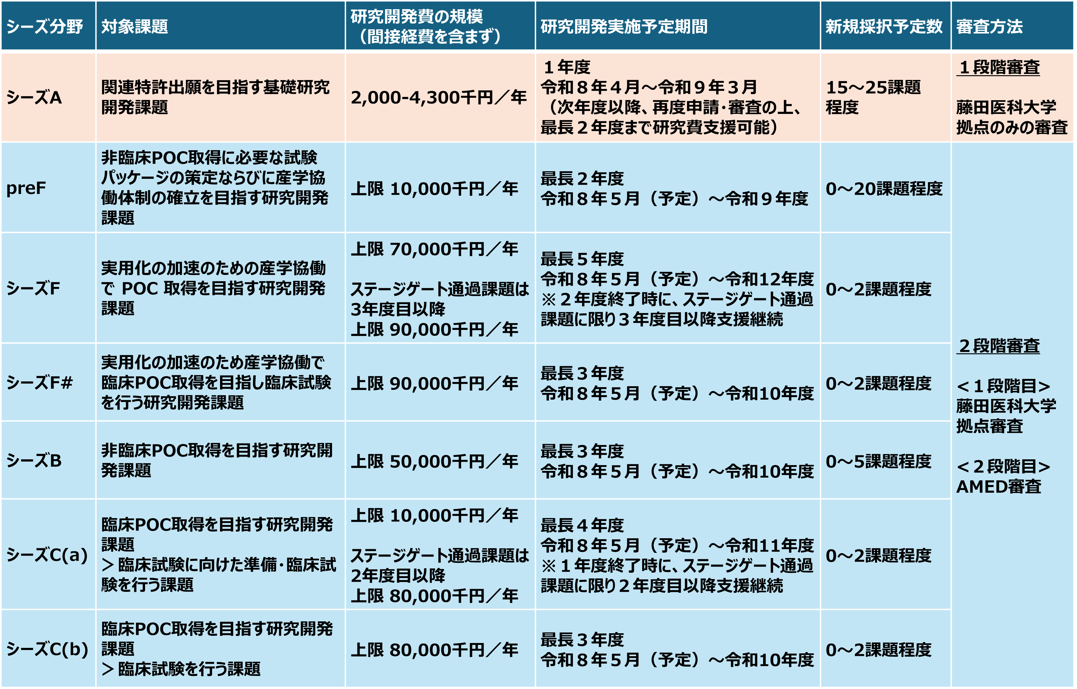 研究開発課題(preF、シーズF/F#、シーズB、シーズC(a)/C(b))公募について