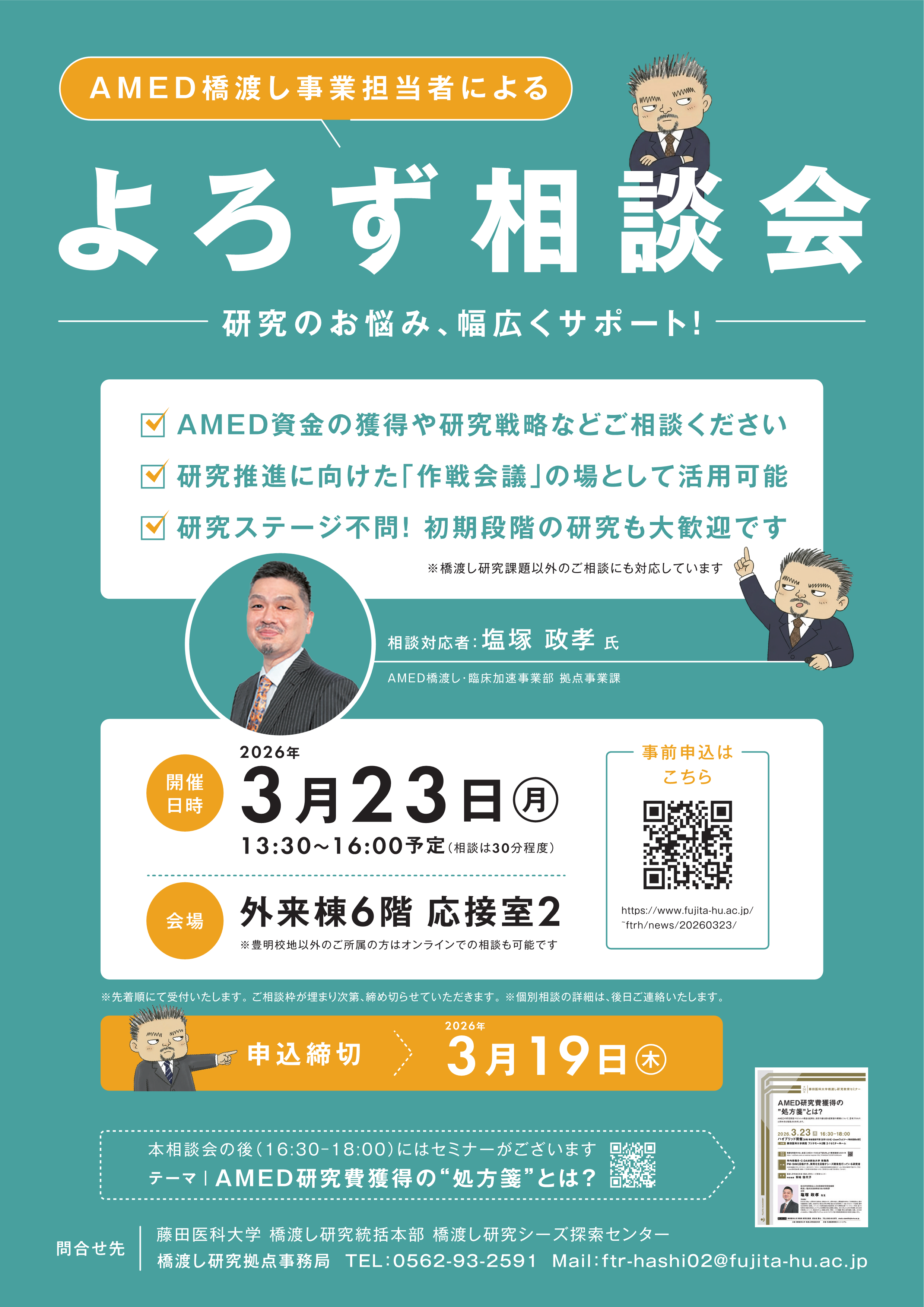 AMED 橋渡し事業担当者による【よろず相談会】を開催いたします。