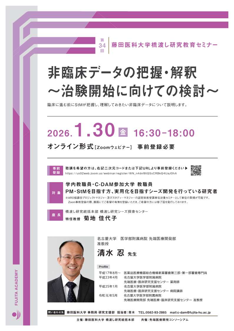 第34回藤田医科大学 橋渡し研究教育セミナー