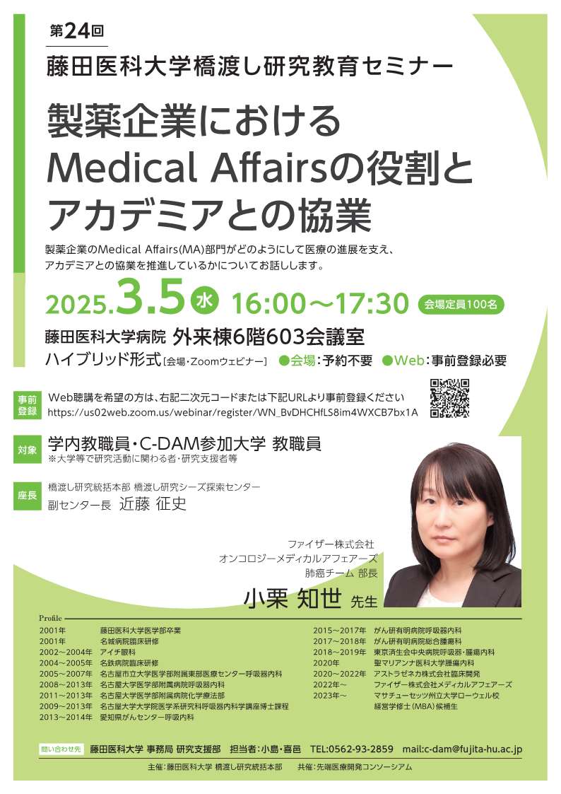 3月5日 | 製薬企業におけるMedical Affairsの役割とアカデミアとの協業 | ファイザー株式会社 オンコロジーメディカルアフェアーズ 肺癌チーム 部長 小栗 知世 様 |