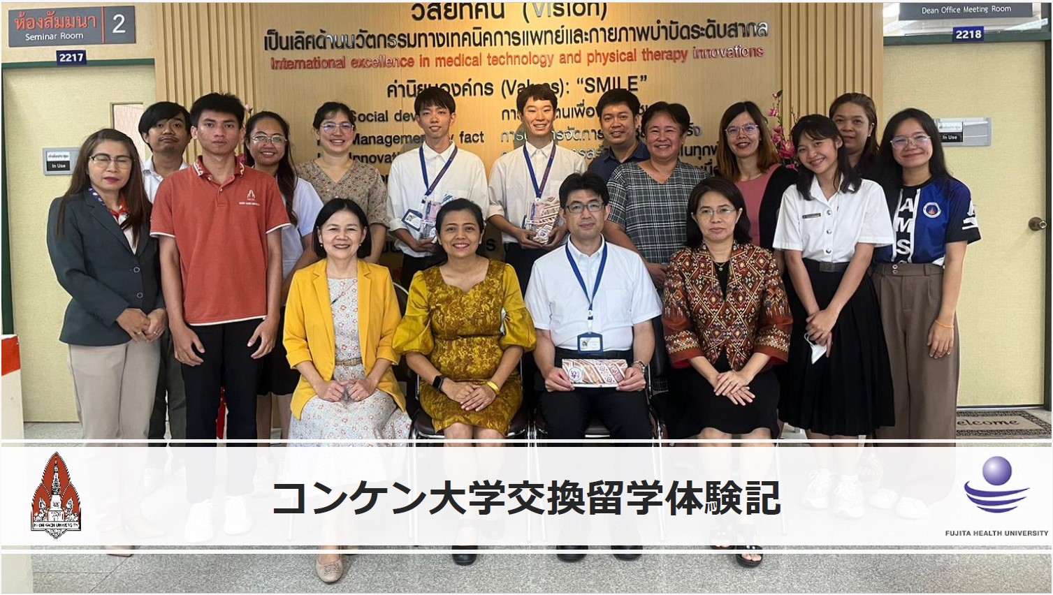 Fujita Health University School of Medical Sciences and Khon Kaen University of Thailand have been conducting student exchange programs for years. The student exchange program is aimed to have better understanding on each country's medical practice and cultures, as well as to improve students' language skills.