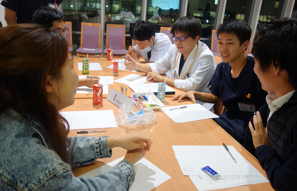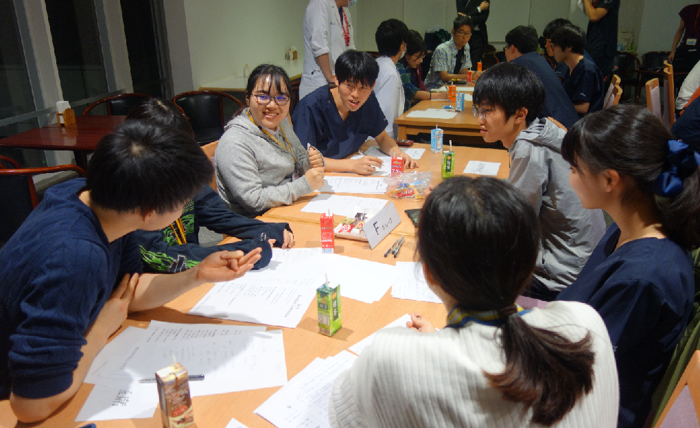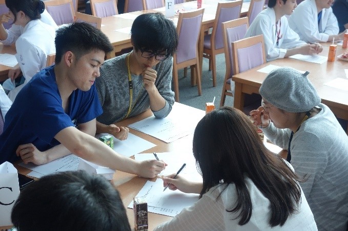 第2部では研修医がERにて体験した症例について、どんな疾患を疑い、検査を進めていったのかなど、グループでディスカッションしながら考えました。少し難しい内容でしたが、実際に研修医が体験した症例ということもあり、自分が研修医になった姿をイメージできた方も多かったようです。