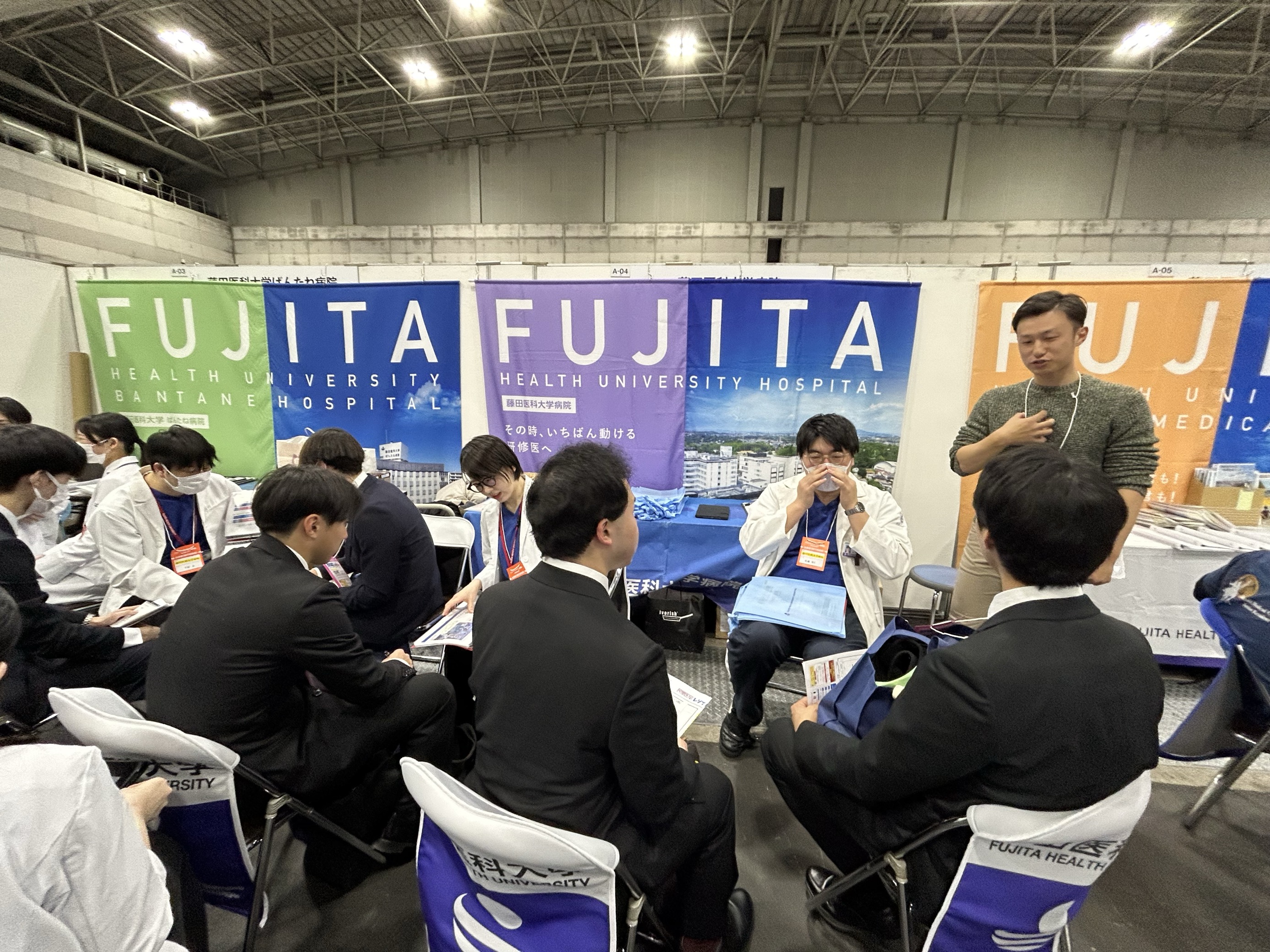 今回の出展では、指導医2名(内科・救急)、研修医4名が参加し、132名の医学生が当院ブースを訪れてくれました。