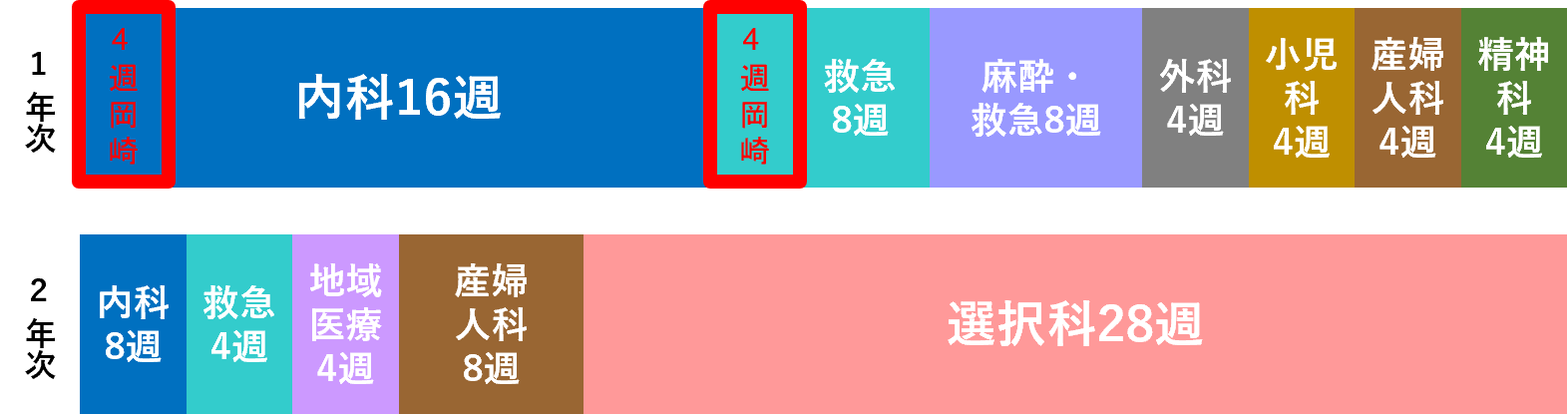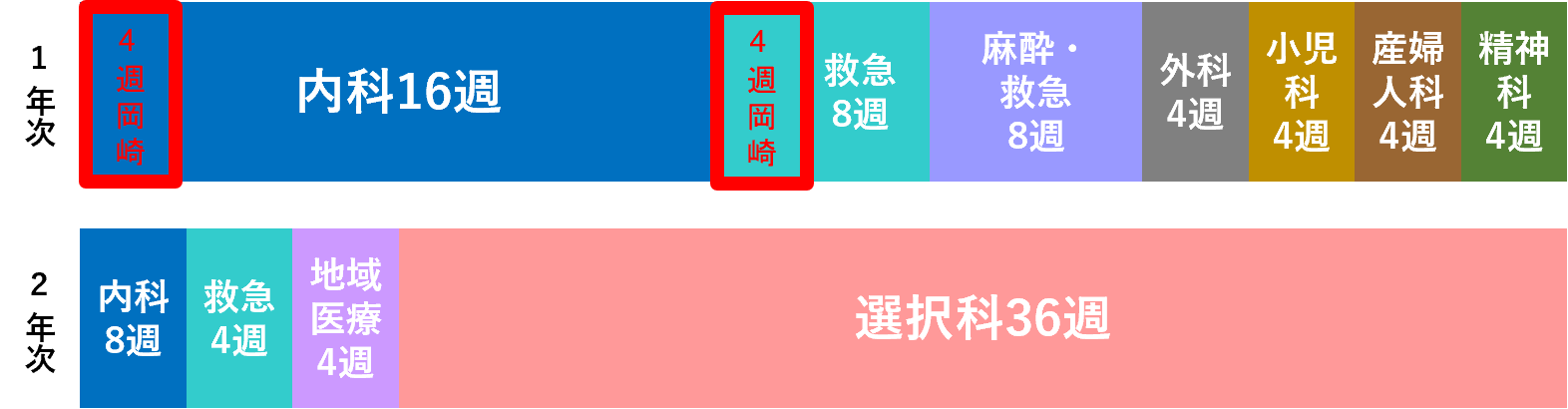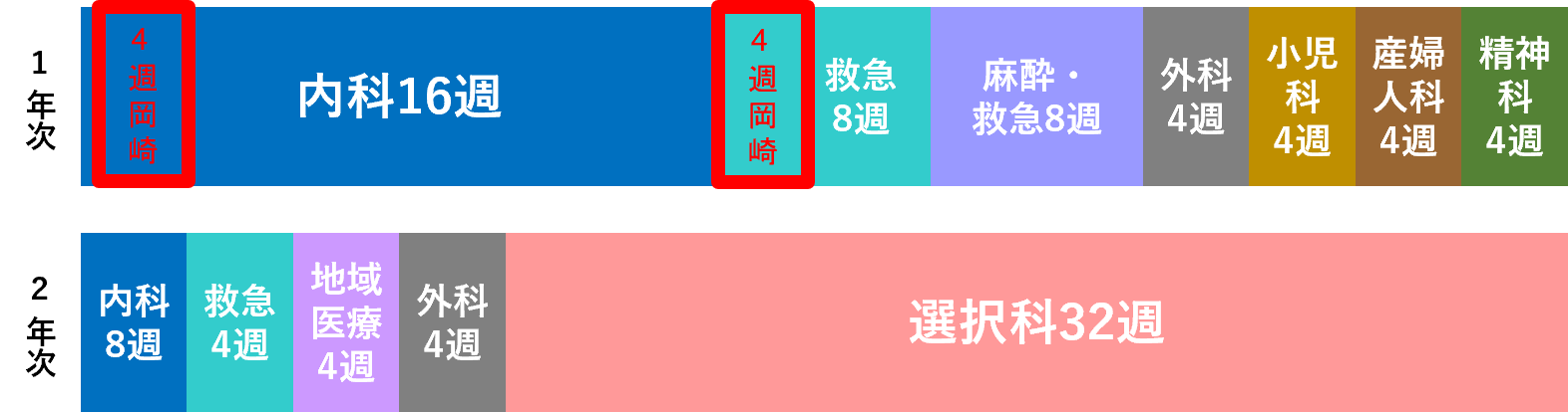 ※内科(必修)4週、救急(必修)4週は岡崎医療センターにて行う。
