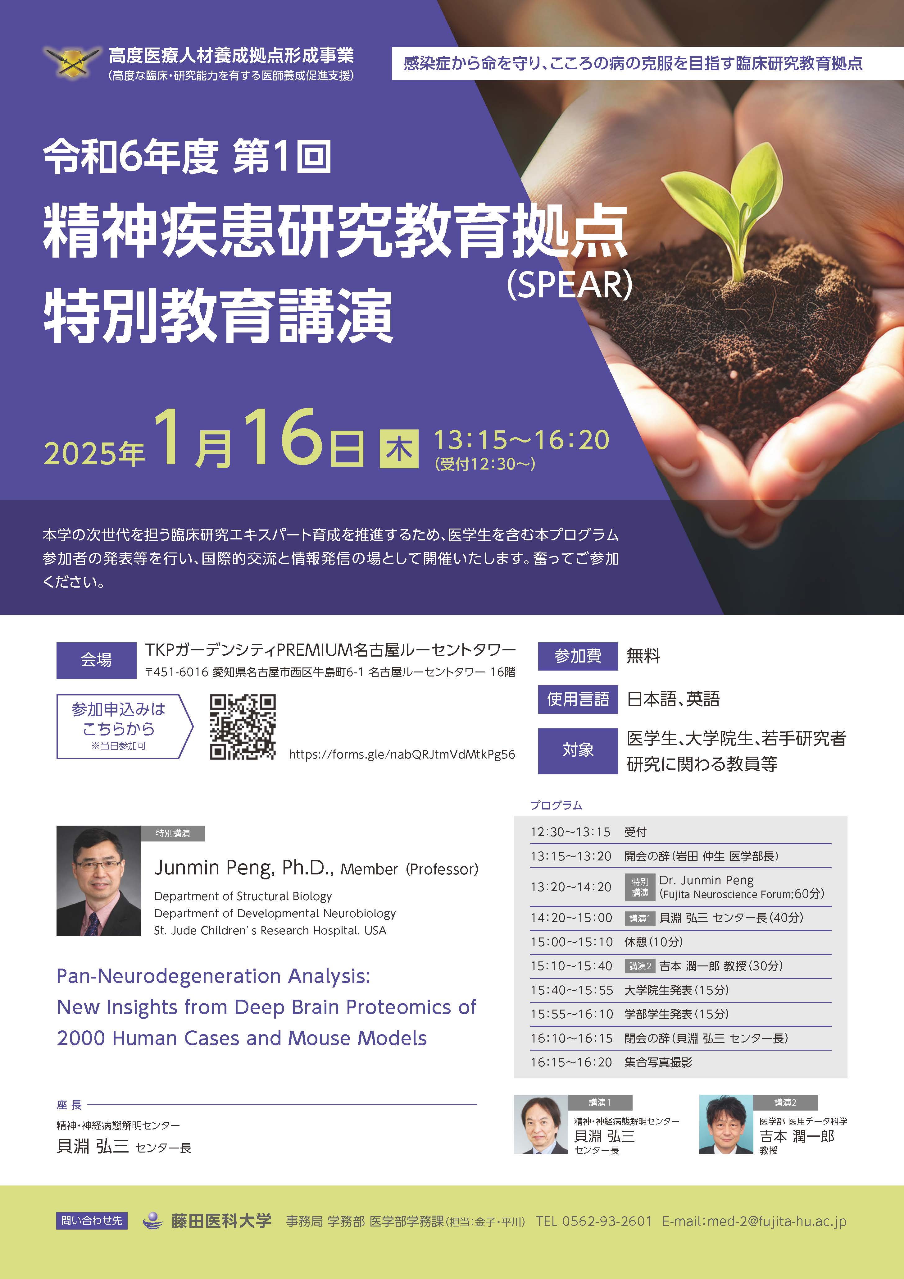 精神疾患研究教育拠点(SPEAR)特別教育講演 2025年1月16日(木)