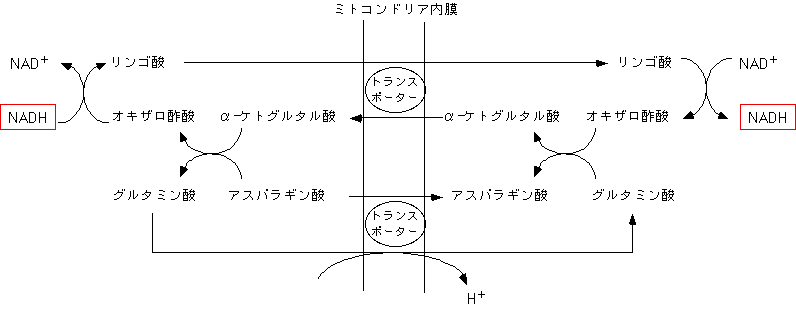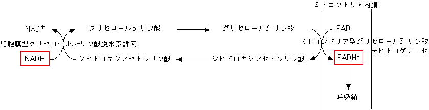 細胞質NADH→ミトコンドリアFADH2として輸送