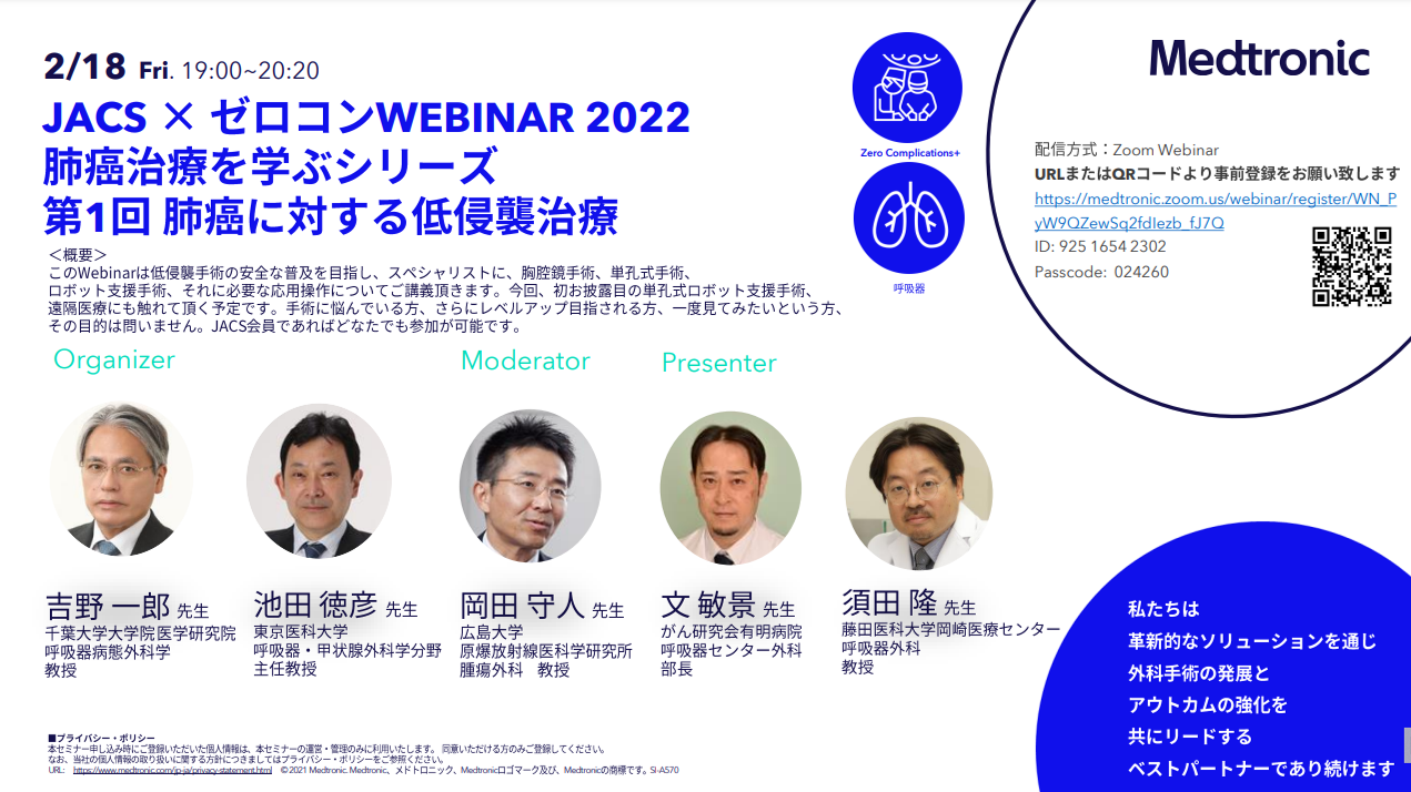 2023年03月17日 第5回 肺癌に対する低侵襲治療(JACSxゼロコンWEBINAR2023)において栃井祥子が単孔式手術の講演を行いました。