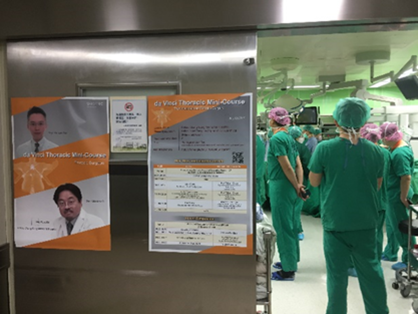 2018年2月28日 台湾の台北医科大学病院で進行した胸腺種のロボット手術を依頼され栃井大輔先生と一緒に剣状突起下アプローチによるロボット手術を現地で行いました。