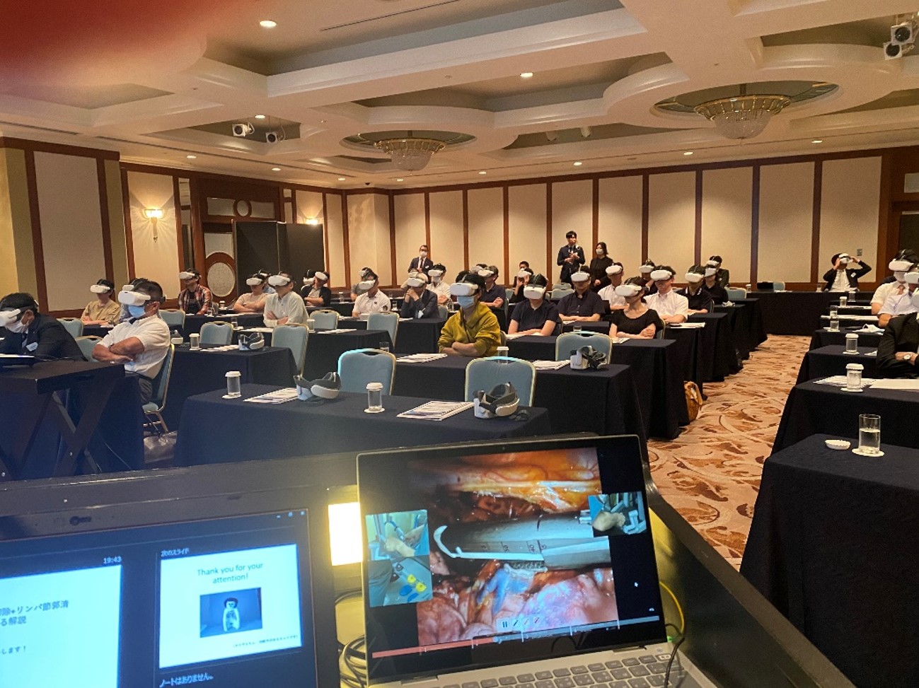 最新の我々の手術動画を3D画像のVRで供覧しました。参加者は皆ゴーグルを装着しています。