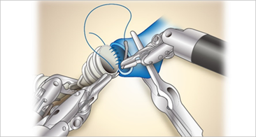In addition, in February 2014, we devised a method for using a subxiphoid approach with a da Vinci surgical system to perform thymectomy4). This method is a ground-breaking new approach offering an excellent field of vision, excellent operability, and minimal invasiveness. In 2019, we performed the first case of thymectomy with vascular prosthetic replacement in the world 5) and SVC replacement in 2020.