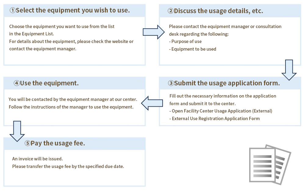| Equipment Usage Fee | Varies depending on equipment Please refer to the Equipment List for External Users for details. |