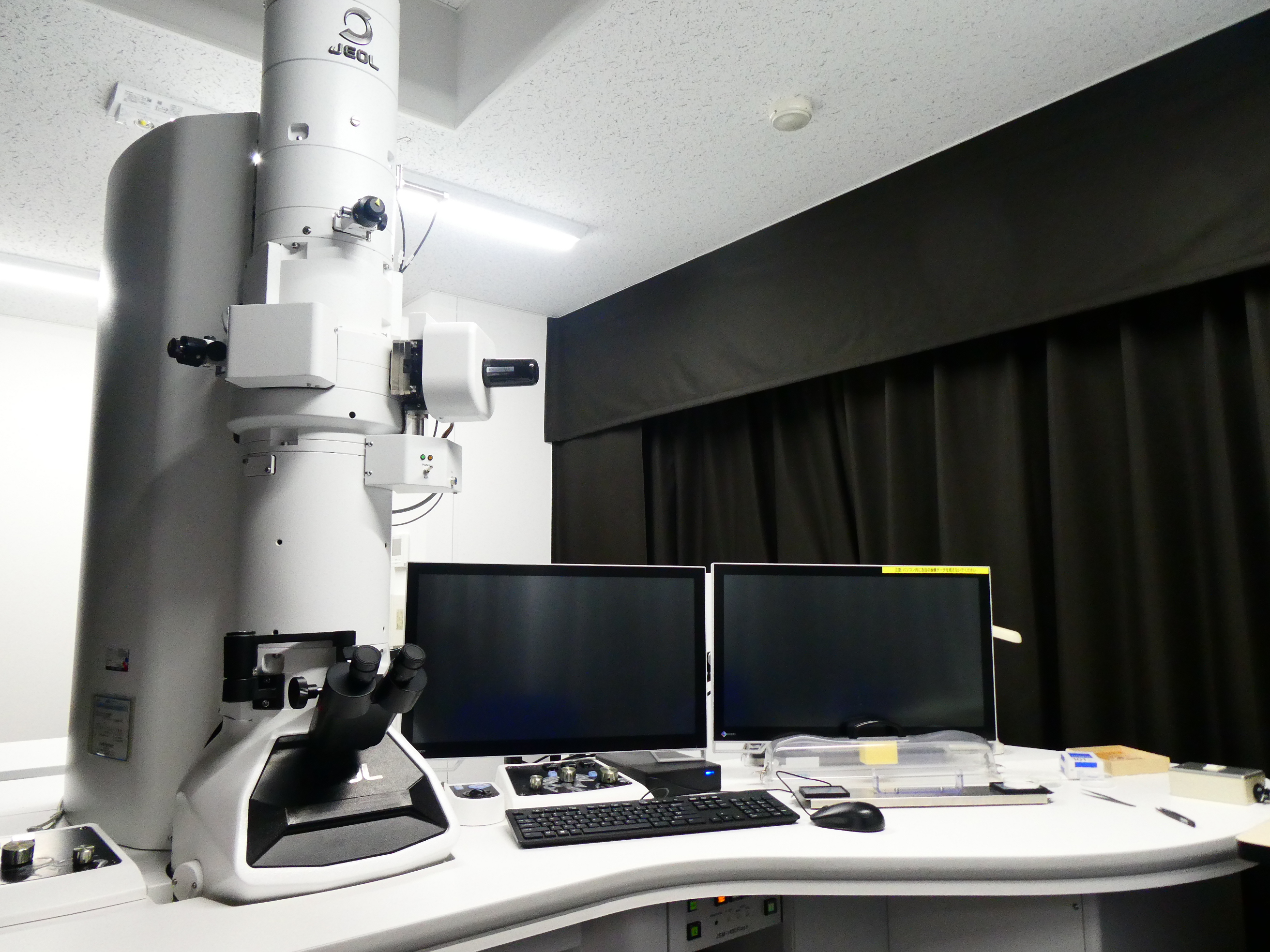 | Features and Specifications, etc. | Overview/Features Device used to observe cross sections of small samples that cannot be seen with an optical microscope. Electrons are irradiated onto ultrathin sections less than 100nm thick, allowing observation of the fine structure of the sample by imaging the electrons that pass through the ultrathin sections. Specifications TEM resolution: 0.2nm, acceleration voltage: 10-120kV, magnification: x 10 to 1,200,000, maximum sample tilt angle (Tilt-X), exhaust system: TMP, equipped with JEOL manufactured sCMOS camera, ultra-wide field montage system Limitless Panorama (LLP) equipped, optical microscope image link feature Picture Overlay equipped, etc. |