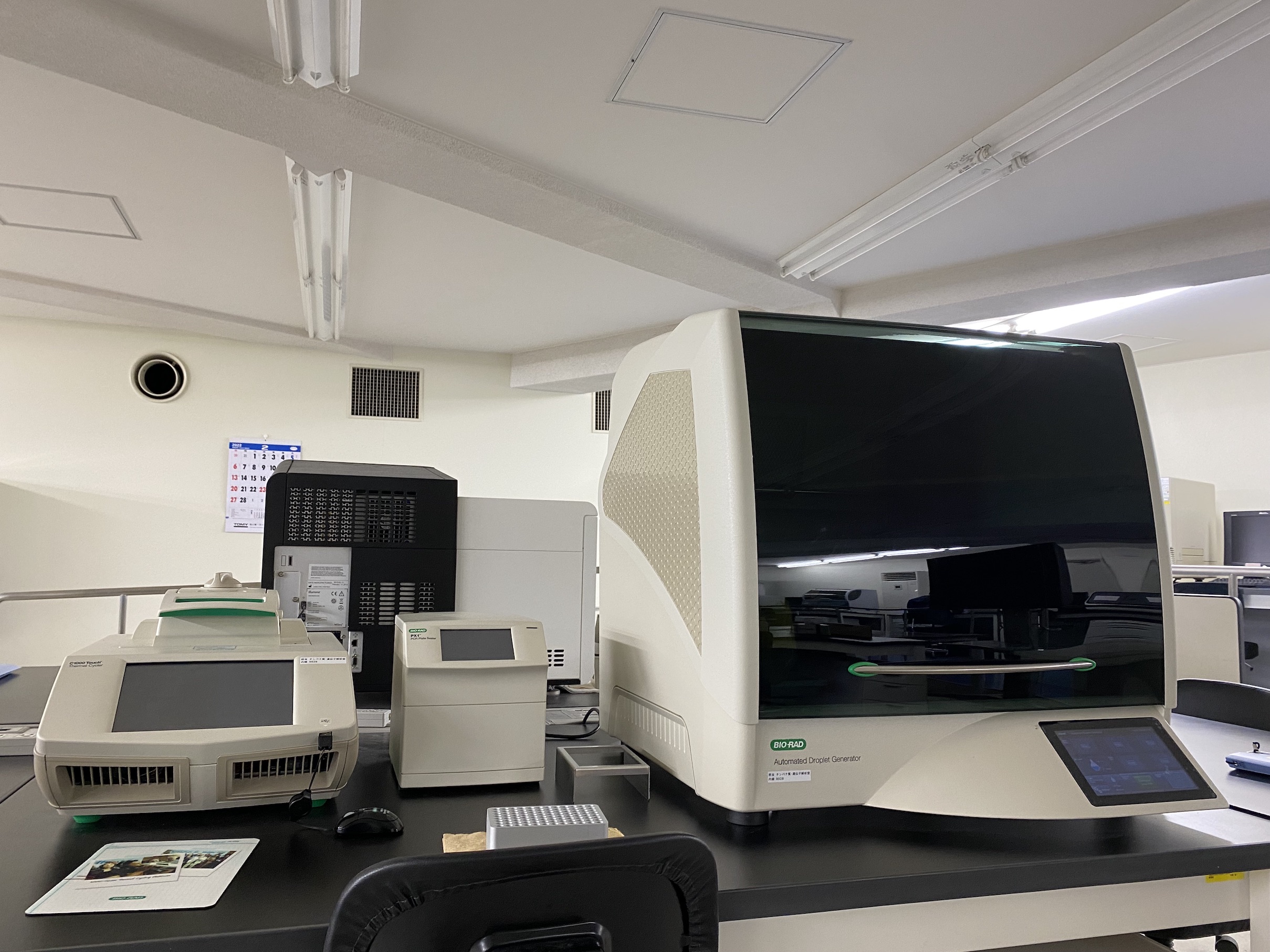 核酸の超高感度な絶対定量解析を行う装置 〈Droplet Digital PCR システム〉 ・QX200 Automated Droplet Generator (AutoDG) ・QX200 Droplet Reader ・C1000 Touch Thermal Cycler 2019年3月設置 |